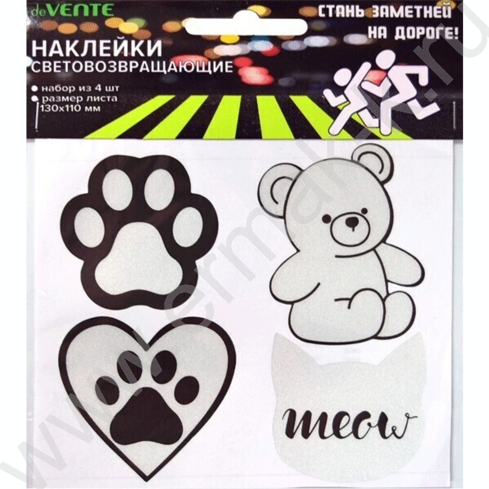 Наклейки светоотражающие Toys, 65*55мм, серебристо-белые, европодвес