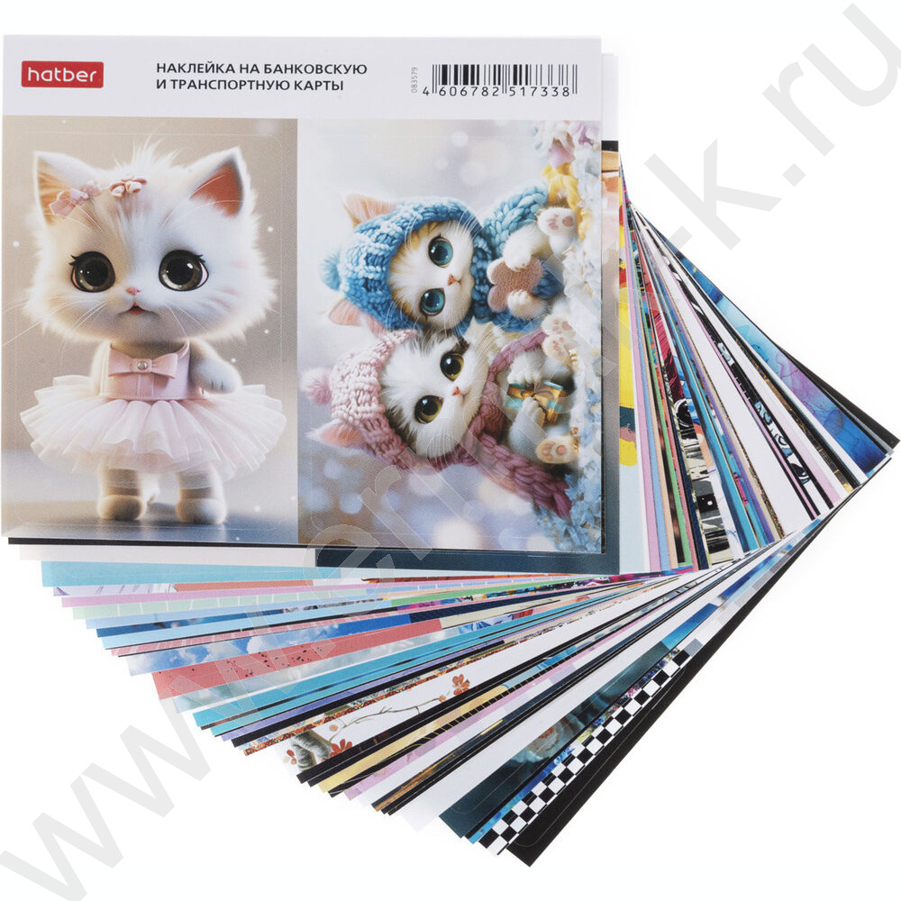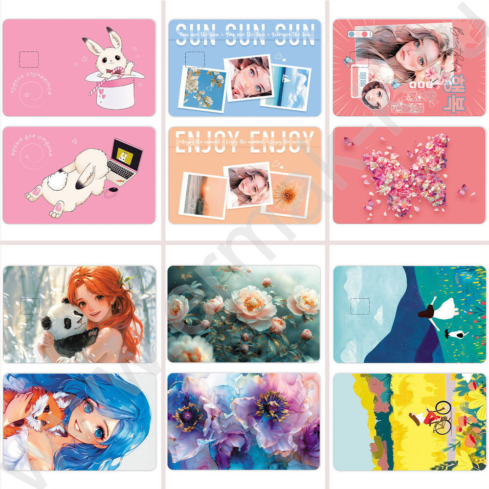 Наклейка на банковскую и транспортную карты с высечкой под чип "Ассорти" 48 дизайнов в блоке