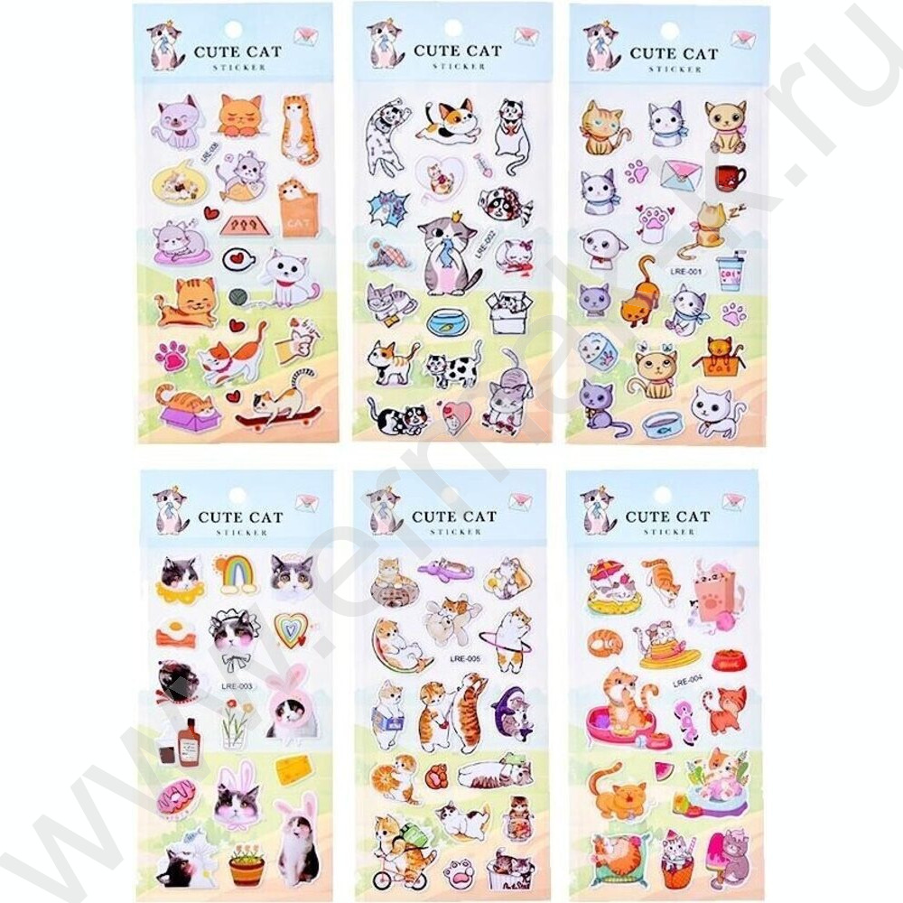 Наклейки декоративные 10*22см Котики ассорти