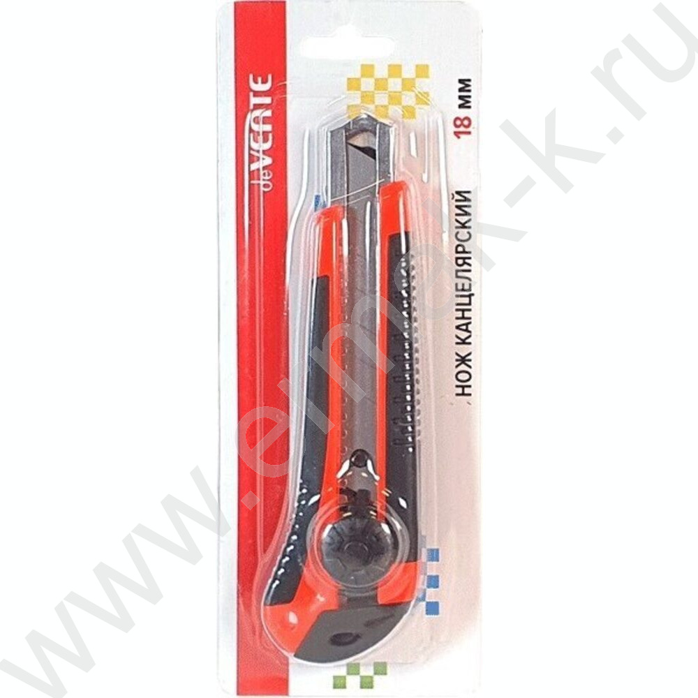 Нож канцелярский 18мм черный с красным метал.направляющие,ручная блокировка лезвия,каучуковые вс