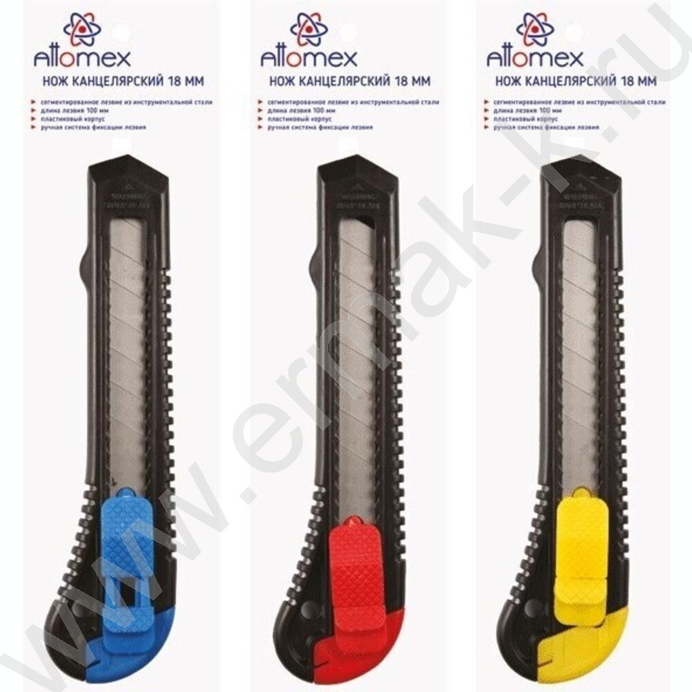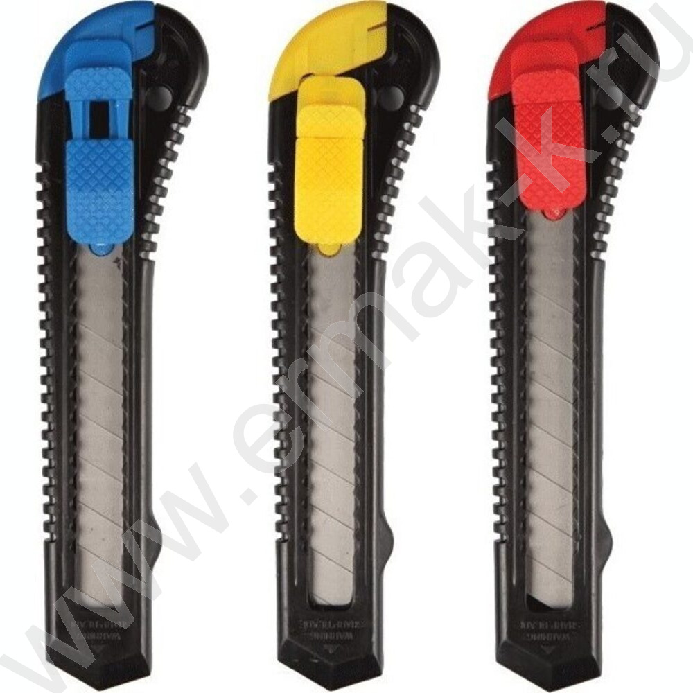 Нож канцелярский 18мм ассорти пл.направляющие,ручная блокировка лезвия,пл.блистер