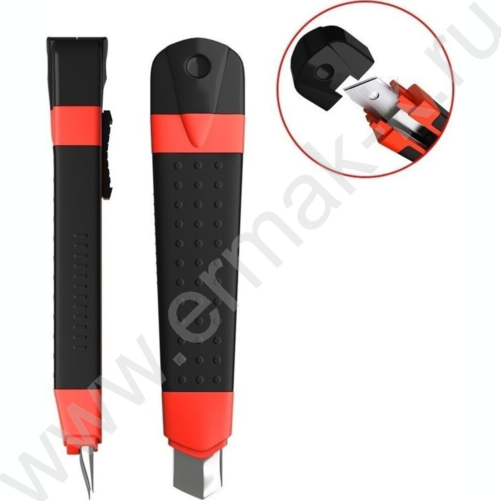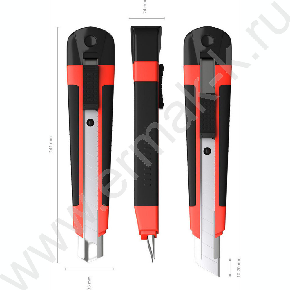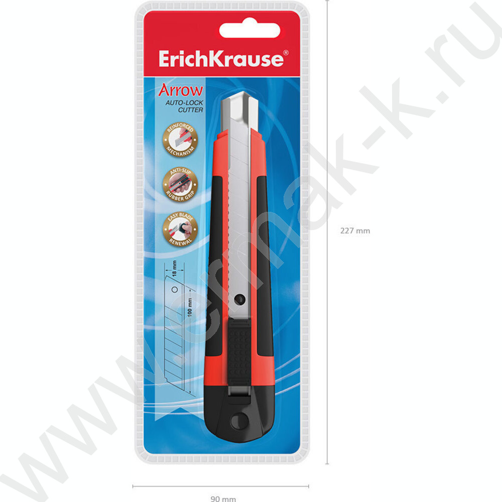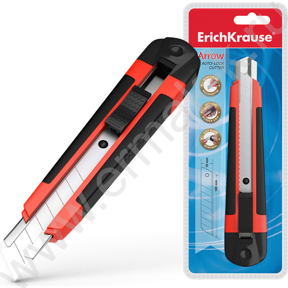 Нож канцелярский 18мм Arrow красный,резин.вставка блистер,европодвес