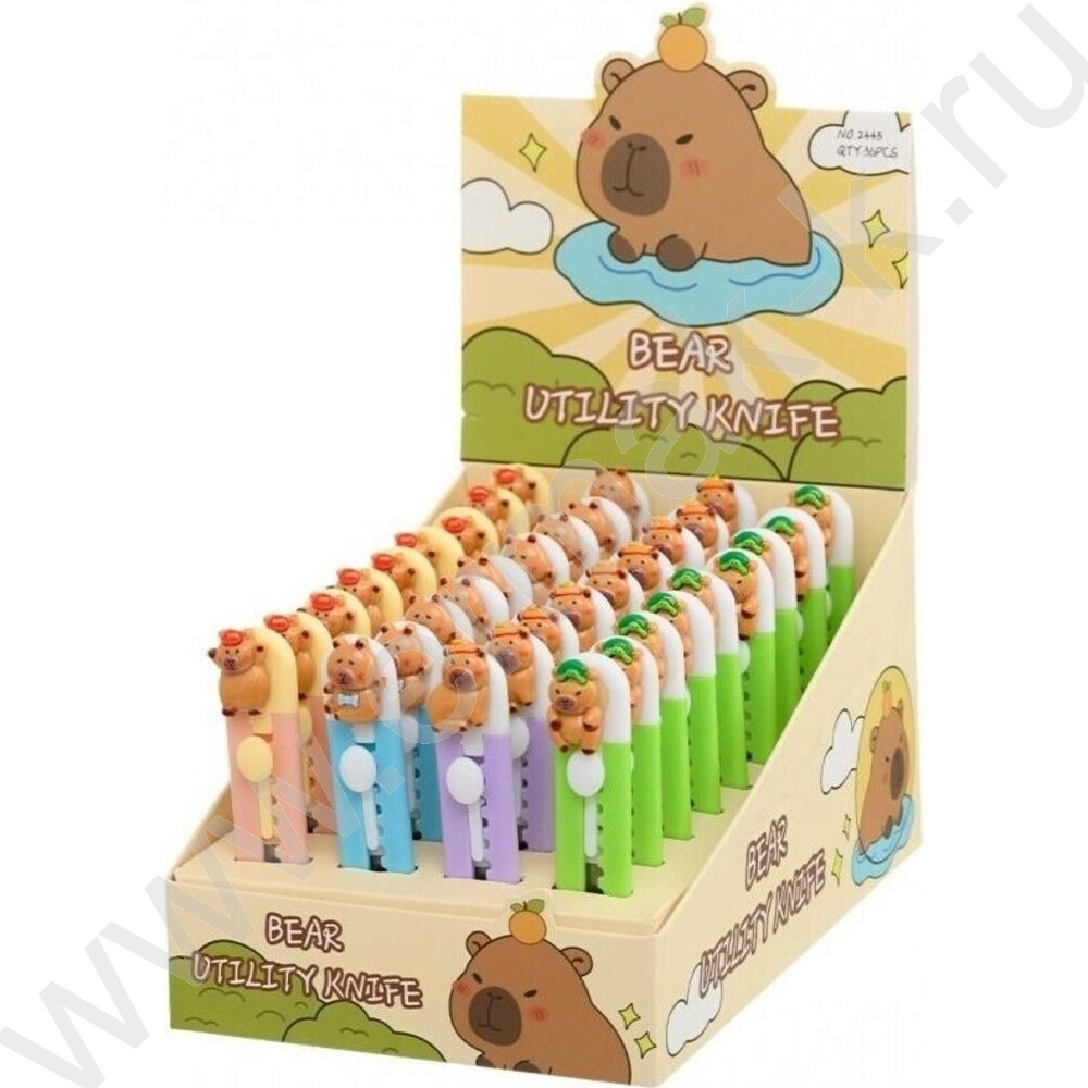 Нож канцелярский лезвие-4 см, размер 9 см Панда/цветной пластиковый держатель с фигуркой-панда