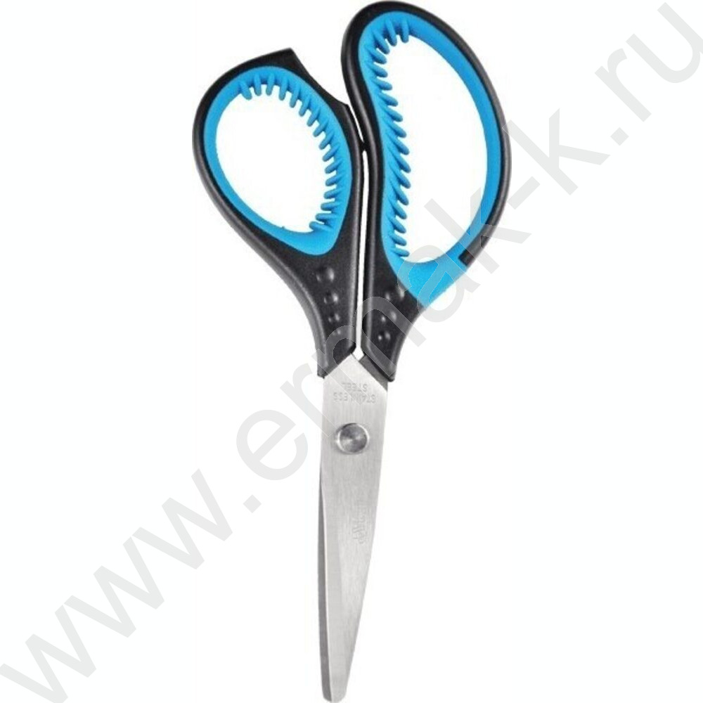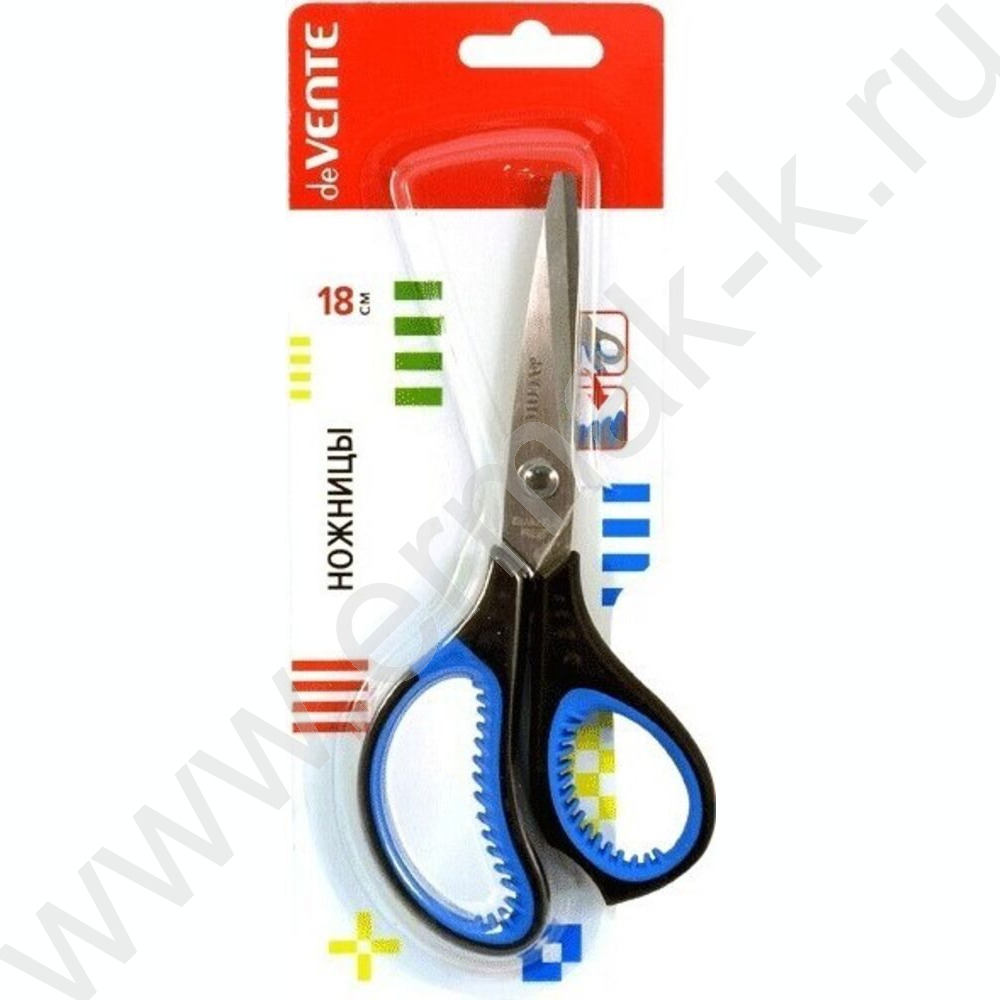 Ножницы 18см двухцветные прорезиненные кольца c лепестками, в картонном блистере