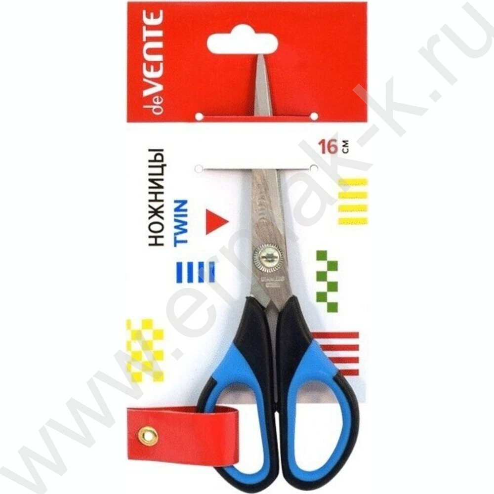 Ножницы 16см Twin двухцветные прорезиненные кольца, в картонном блистере