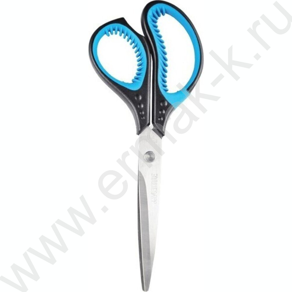 Ножницы 20см двухцветные прорезиненные кольца c лепестками, в картонном блистере