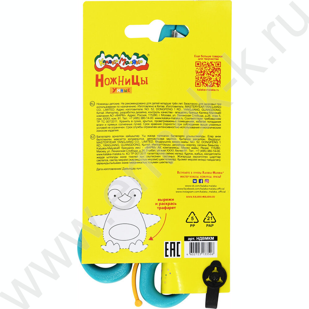 Ножницы 13,5см детские безопасные Каляка-Маляка /бирюзовые /с возвратным механизмом