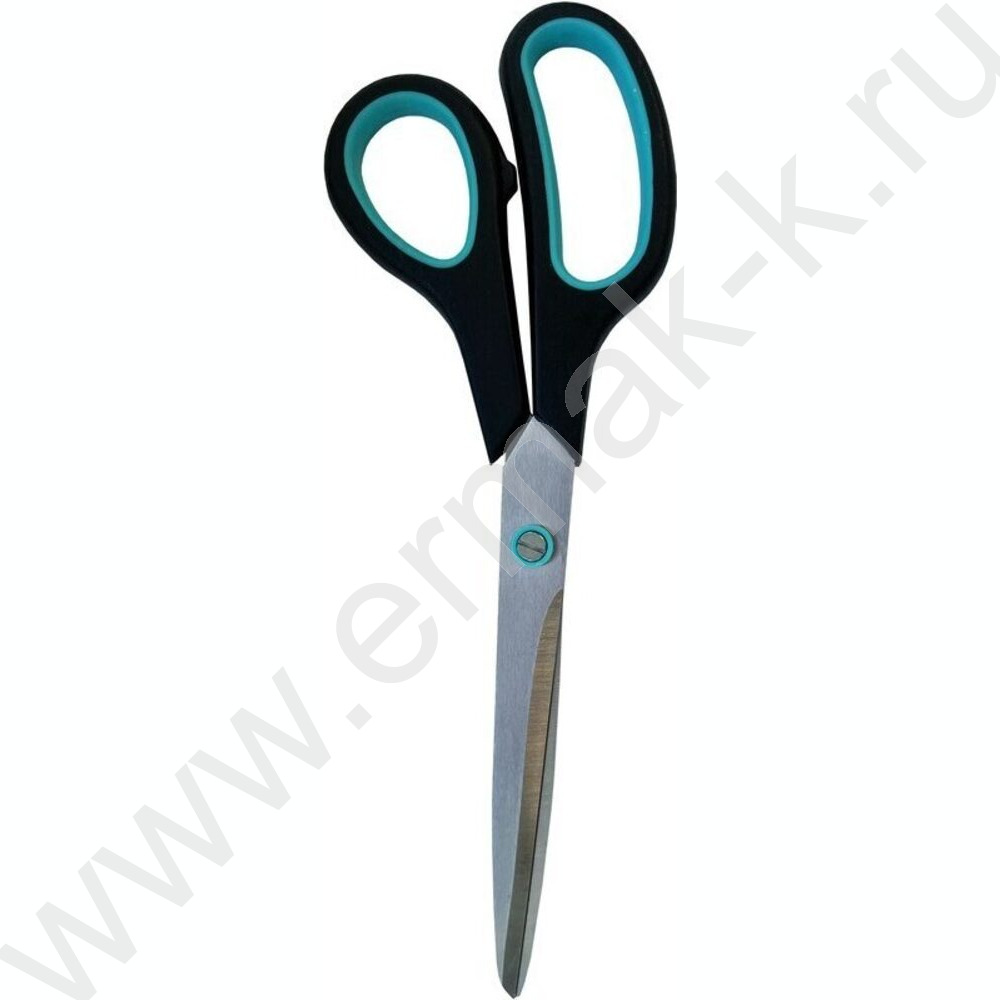 Ножницы 23,5см /ручки с резиновой вставкой, асимметричные /черный/зеленый