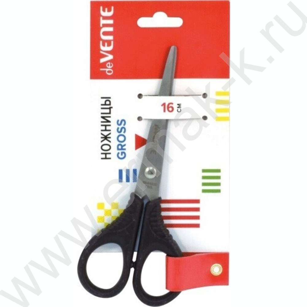 Ножницы 16см усиленные пл.кольца, черные, в картонном блистере