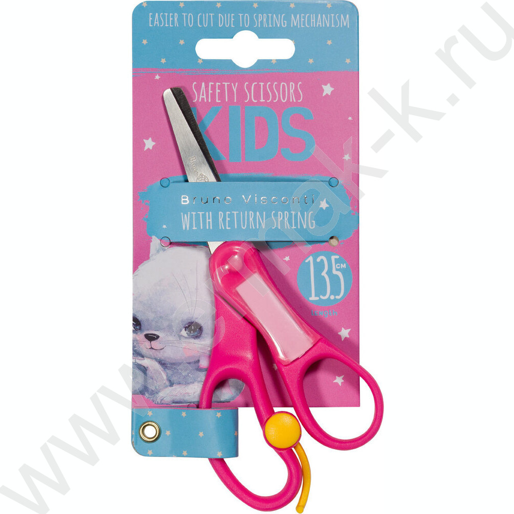 Ножницы 13,5см детские Springcut /с возвратным механизмом и окошком для подписи/блистер,европодвес