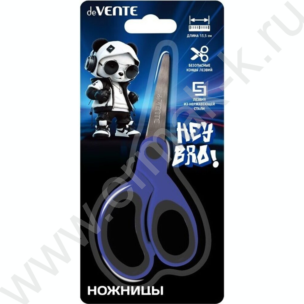 Ножницы 13,5см детские "Hey Bro" /с закругл. кончиками лезвий /прорезин.колца /блистер