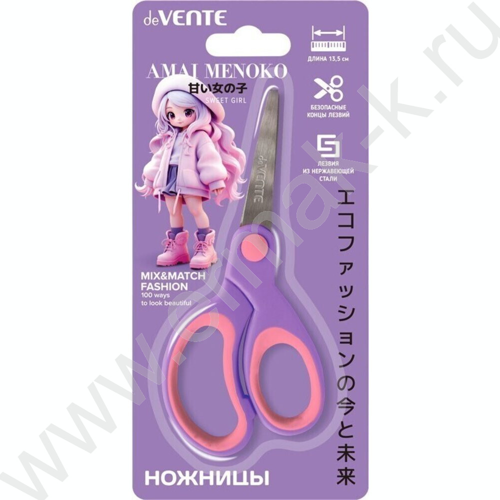 Ножницы 13,5см детские "Amai Menoko" /с закругл. кончиками лезвий /прорезин.колца /блистер