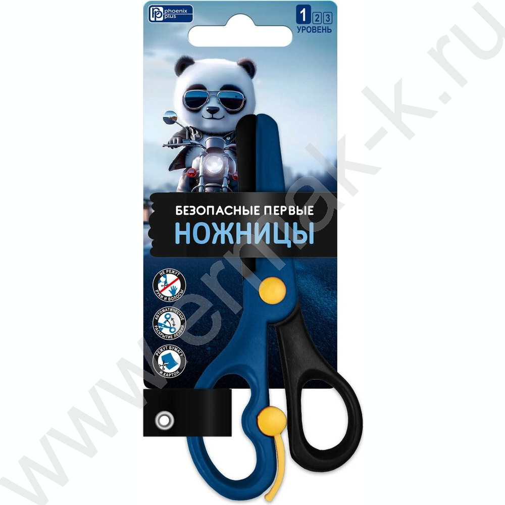 Ножницы 13,6*6,2см детские "Мишка на мотоцикле" /пластик, асимметричные NEW