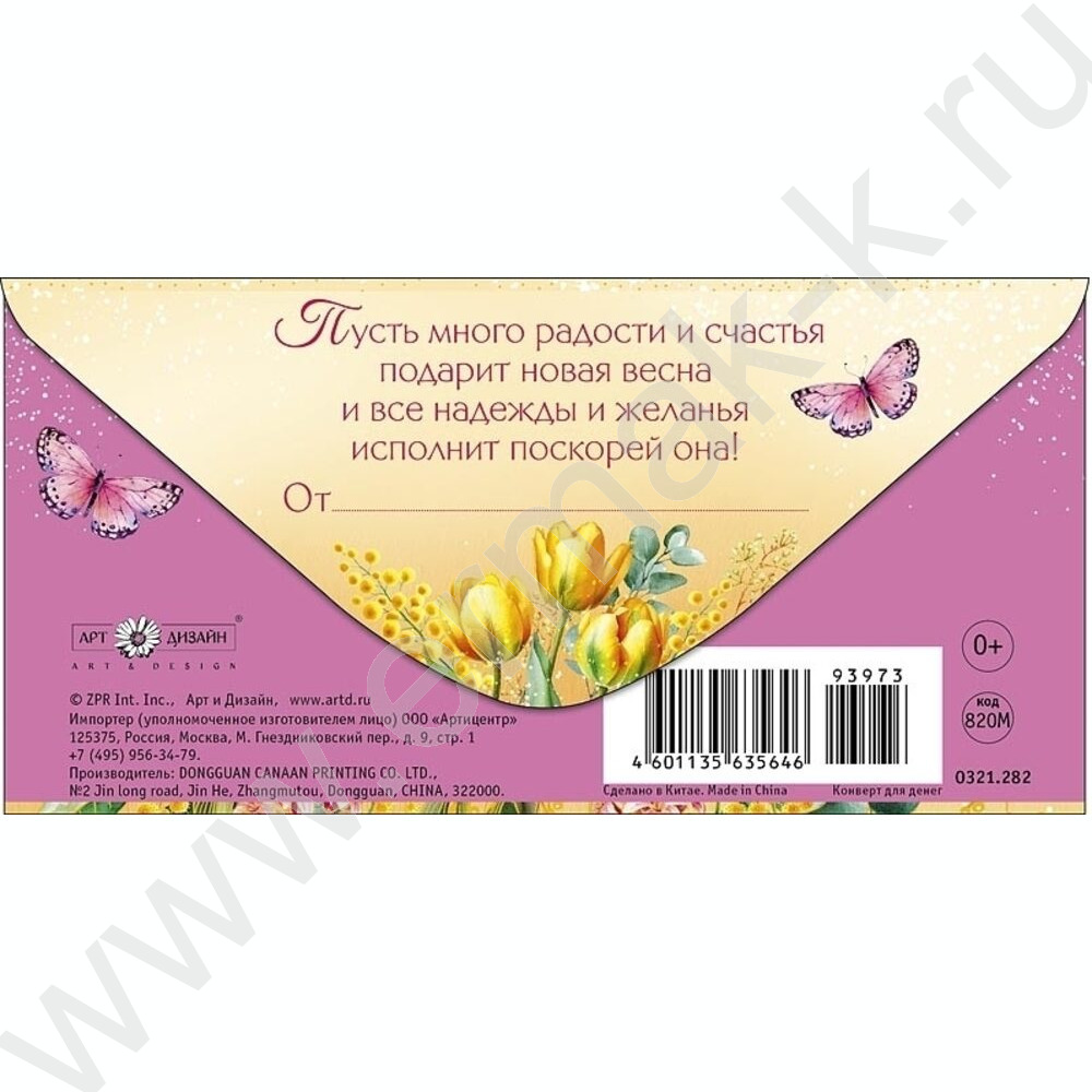 Конверт д/денег 167*83мм "С Днем 8 марта" NEW