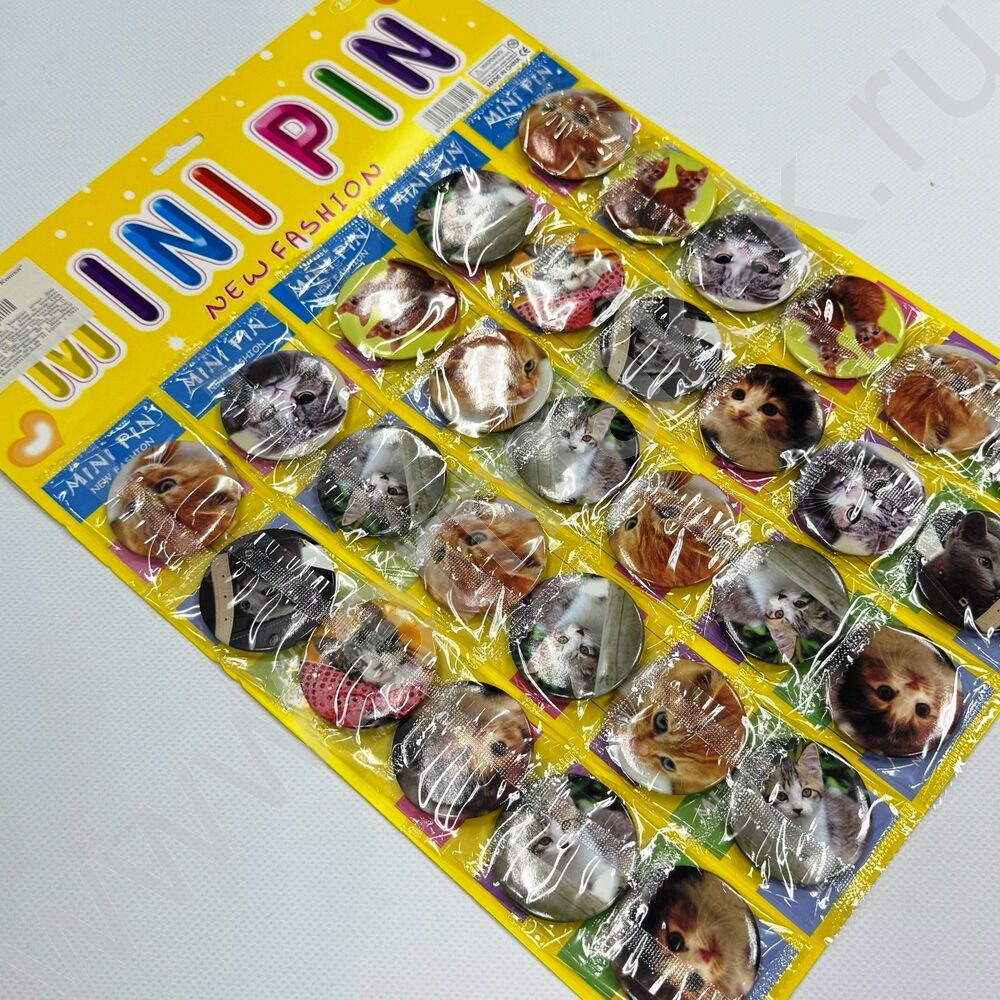 Набор значков Ø 4,5см "Кошки" /30шт