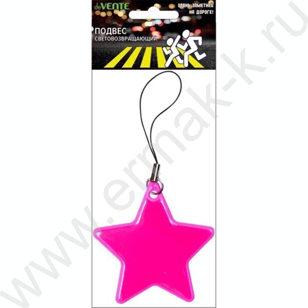 Подвес виниловый светоотражающий "Звезда", 55*55мм, розовый, в комплекте с цепочкой, европодвес