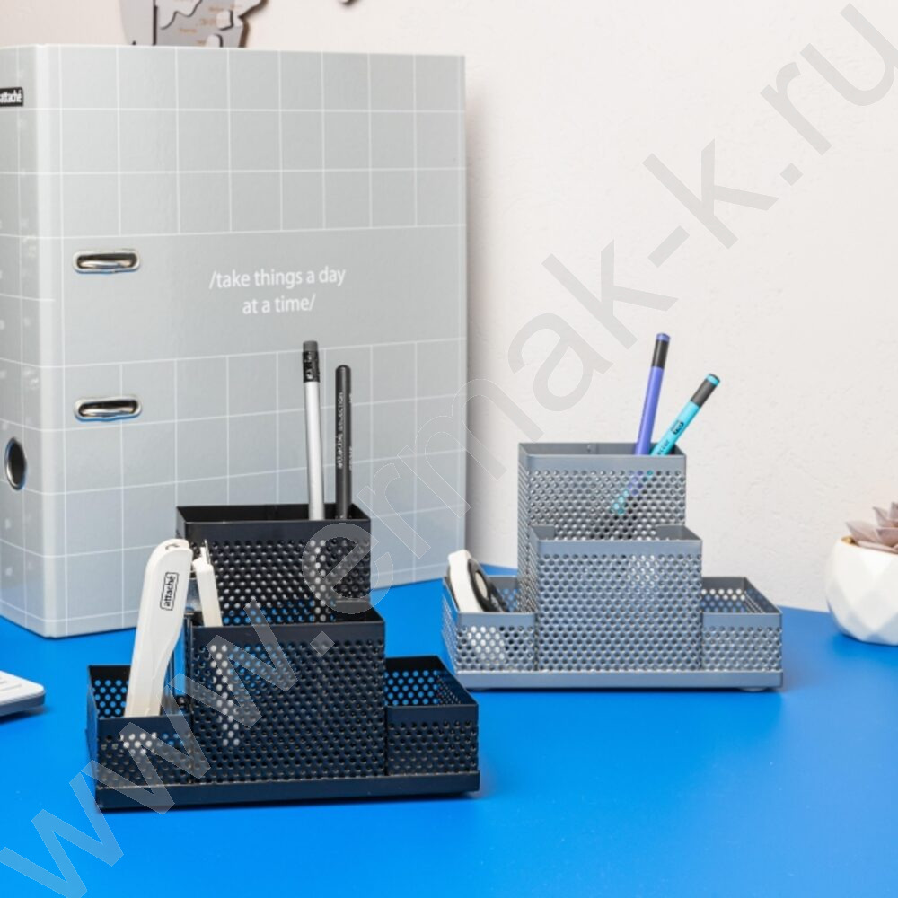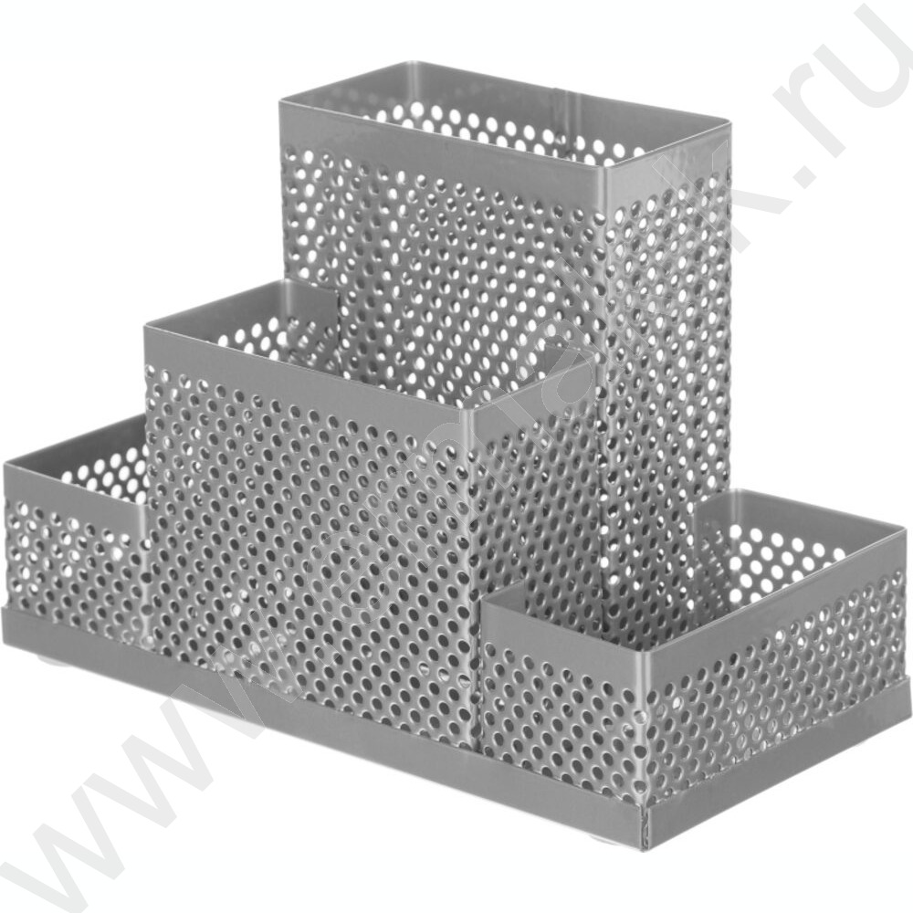 Подставка д/каранд. и ручек сетчатый (метал) серебро 4секции 160*110*80