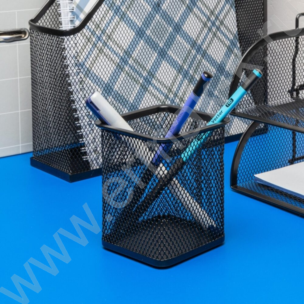 Подставка д/каранд. и ручек сетчатый (метал) черная /квадрат 80*80мм выс.- 9,8см
