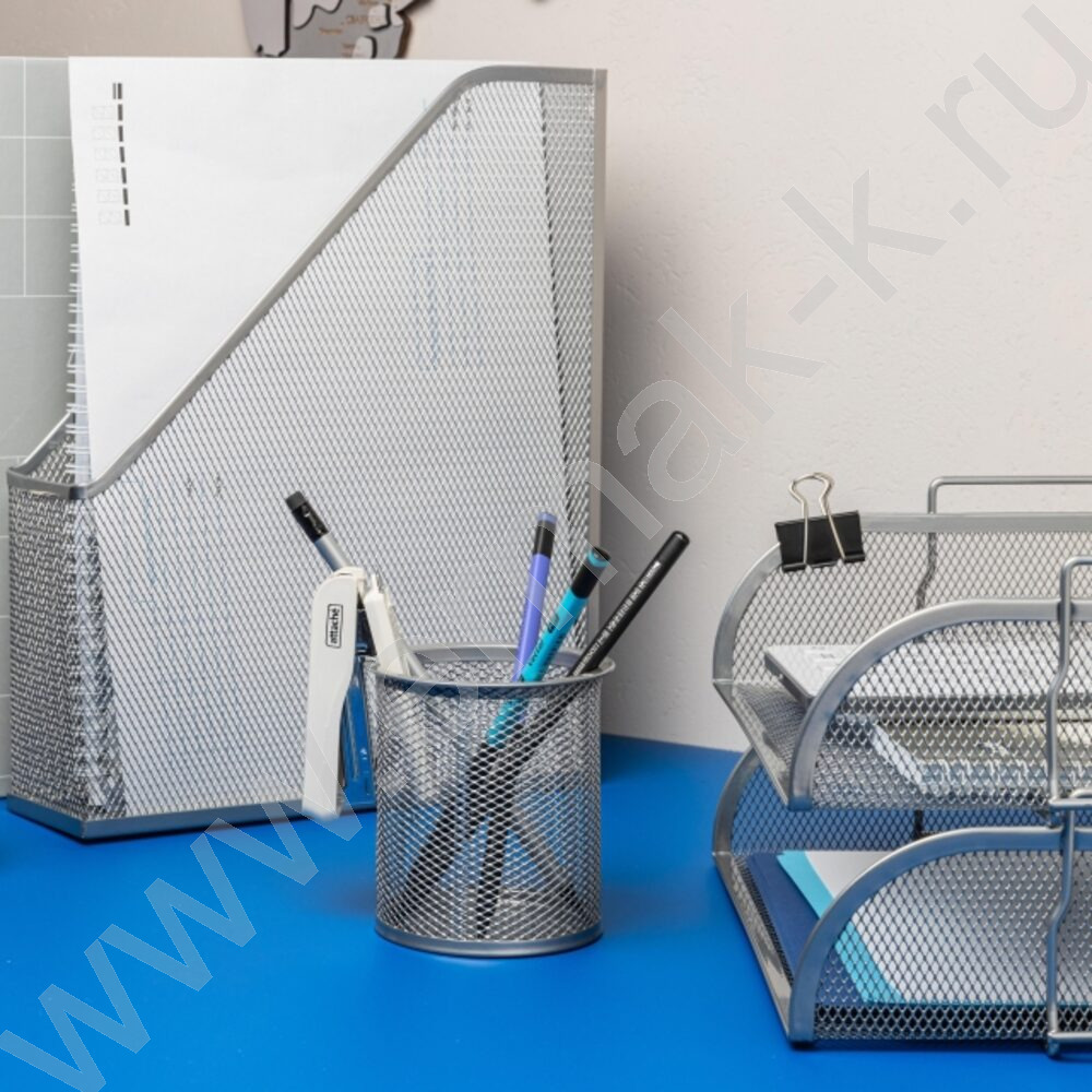 Подставка д/каранд. и ручек сетчатый (метал) серебро /цилиндр 89*100мм