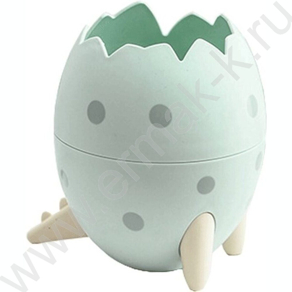 Подставка д/каранд. и ручек 12*8см "Dino in egg", пластик, c элементами декора /зеленая