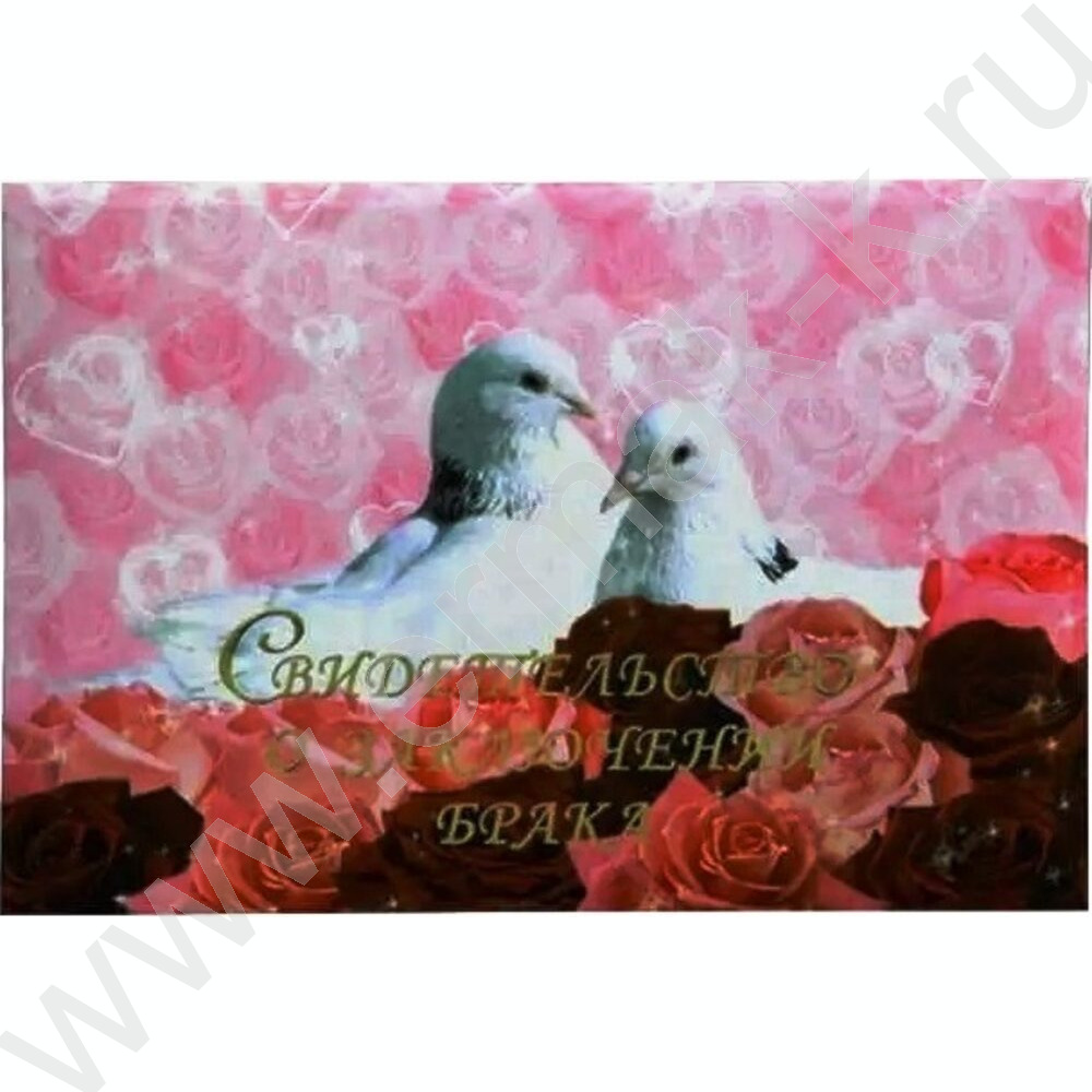 Папка с файлом Свидетельство о заключении брака ламинир. А5 Два белых голубя в цветах