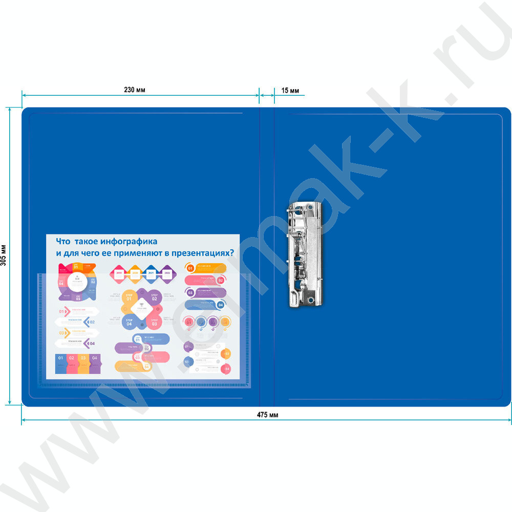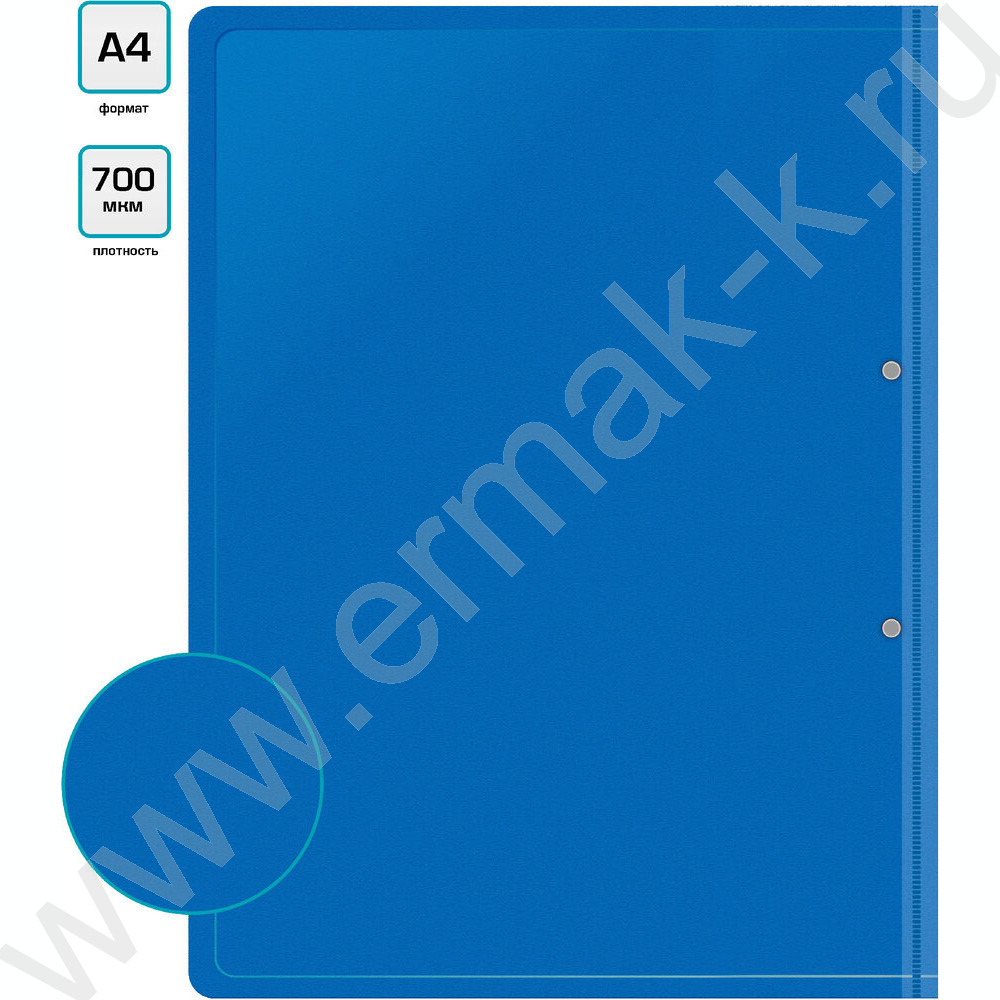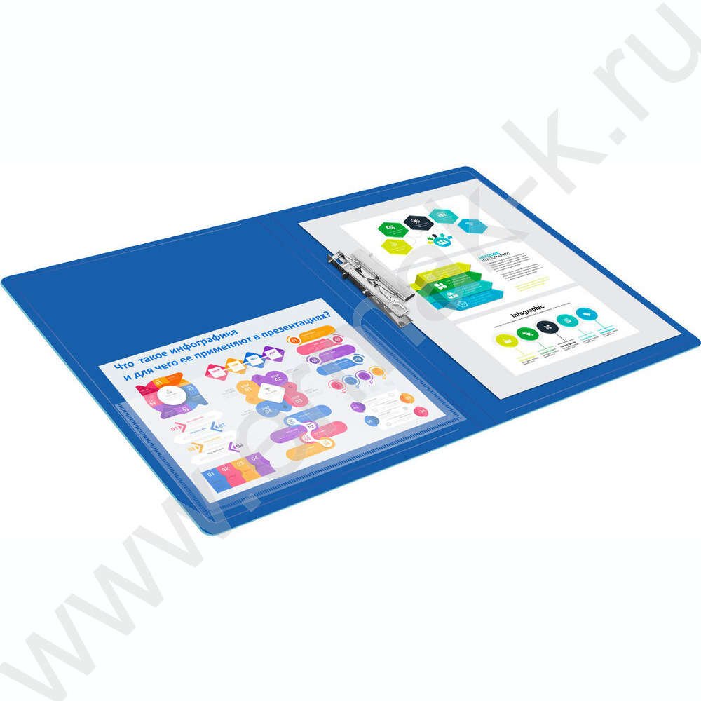 Папка с бок.прижимом синяя 0,7мм карман внутренний и торцевой