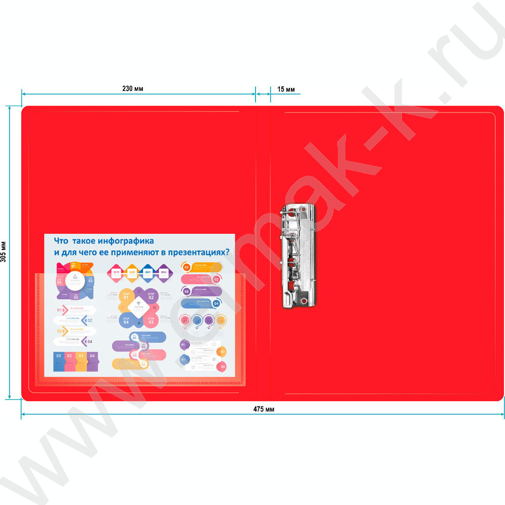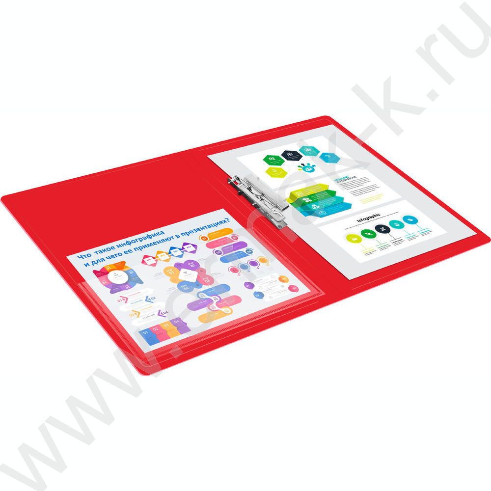 Папка с бок.прижимом красная 0,7мм карман внутренний и торцевой