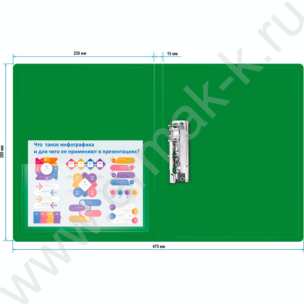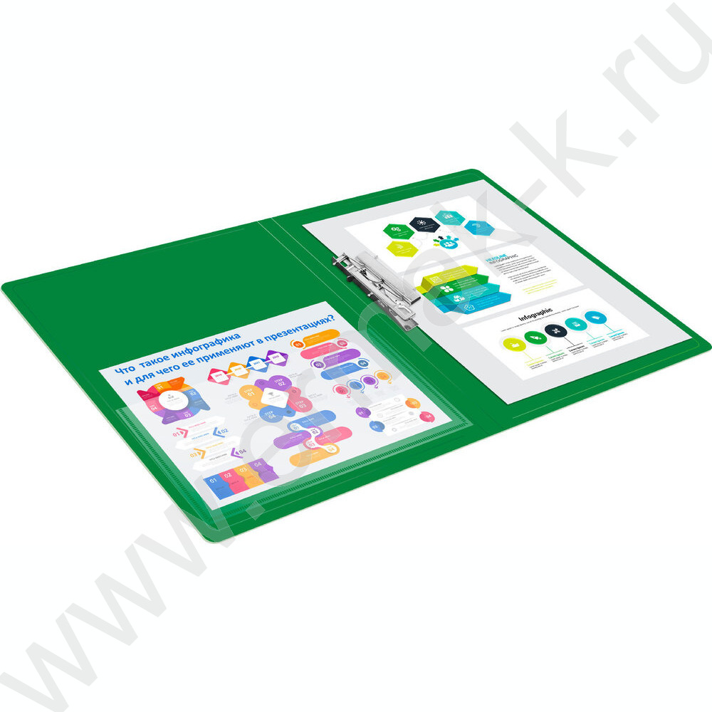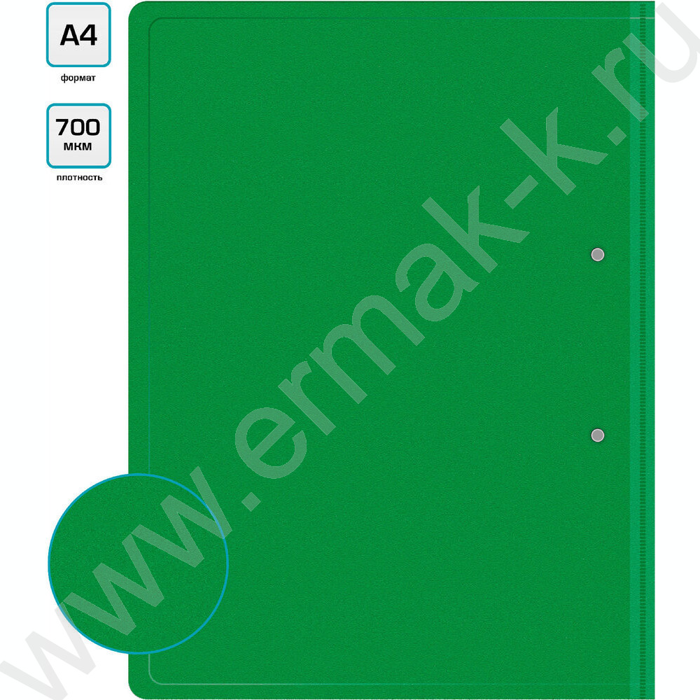 Папка с бок.прижимом зеленая 0,7мм карман внутренний и торцевой