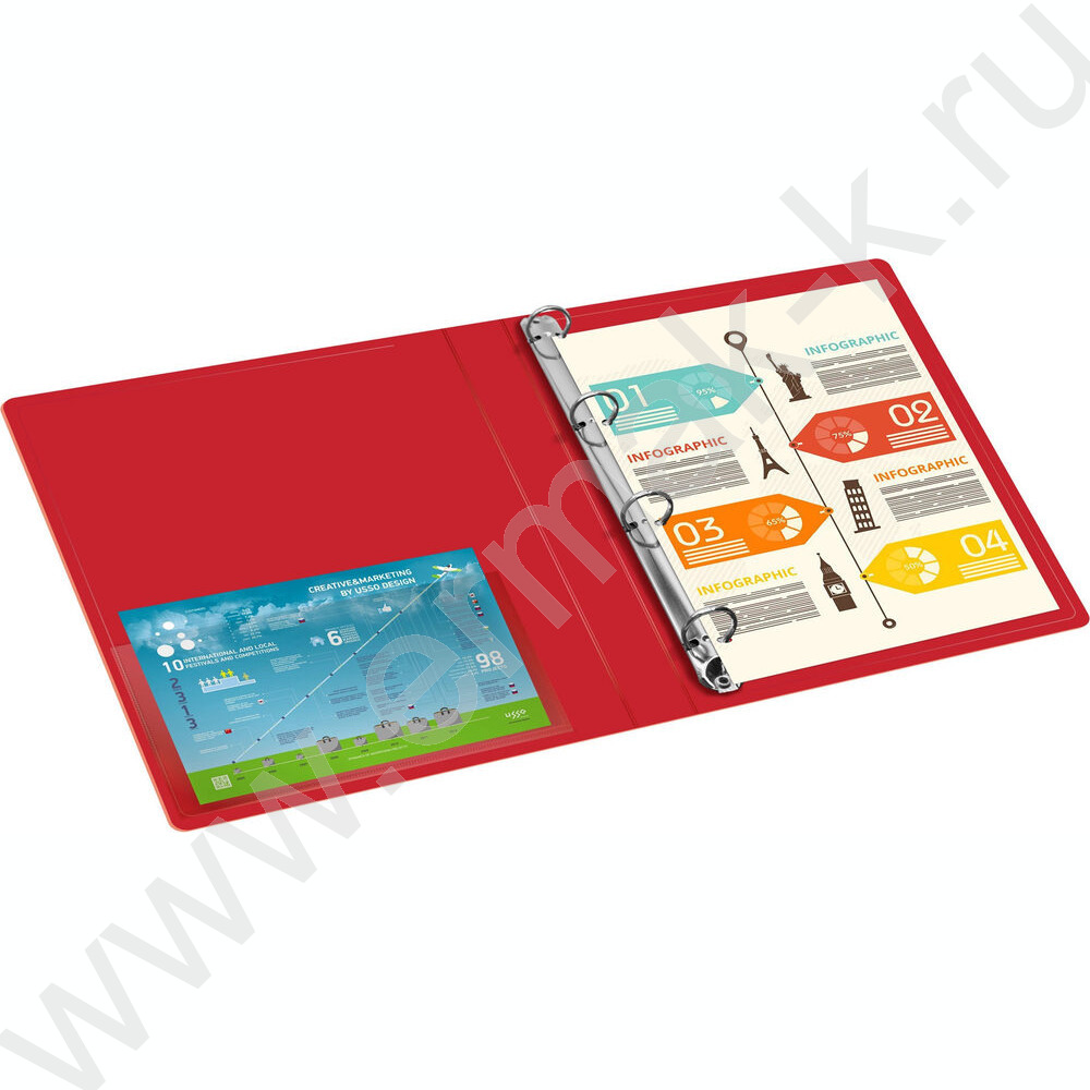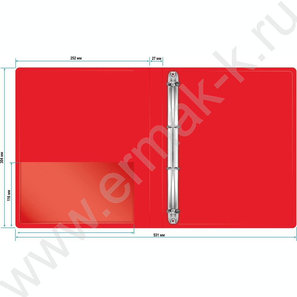 Папка 4 кольца 27мм красная 0,7мм карман внутренний и торцевой