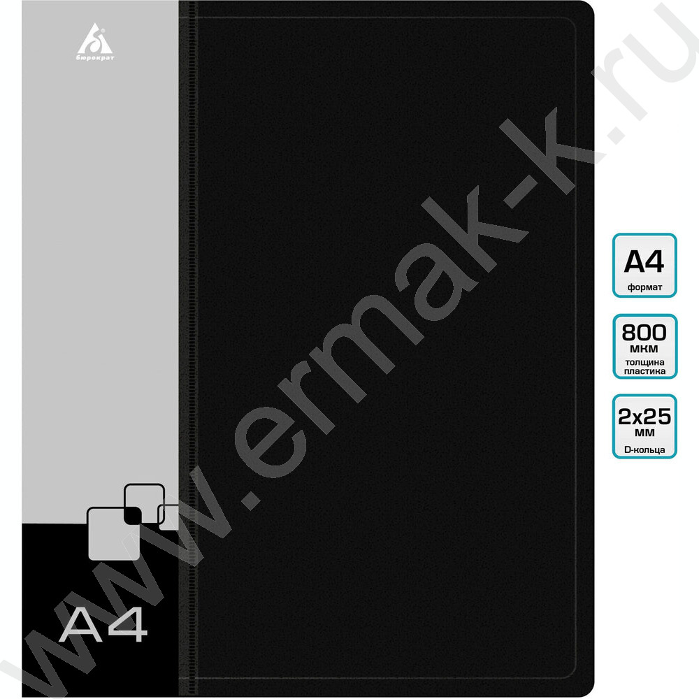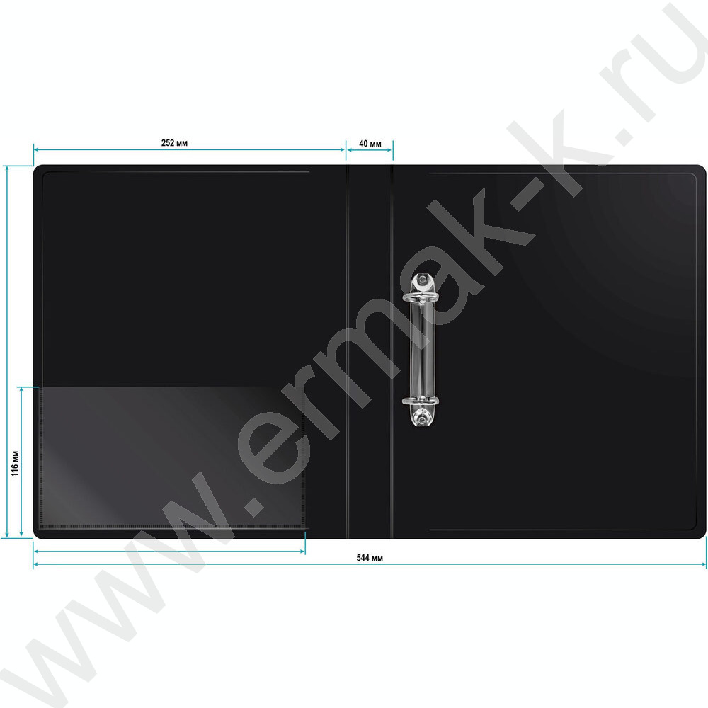 Папка 2 D-образных кольца 40мм черная 0,8мм карман внутренний и торцевой