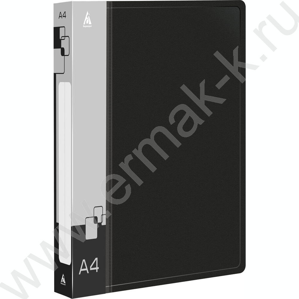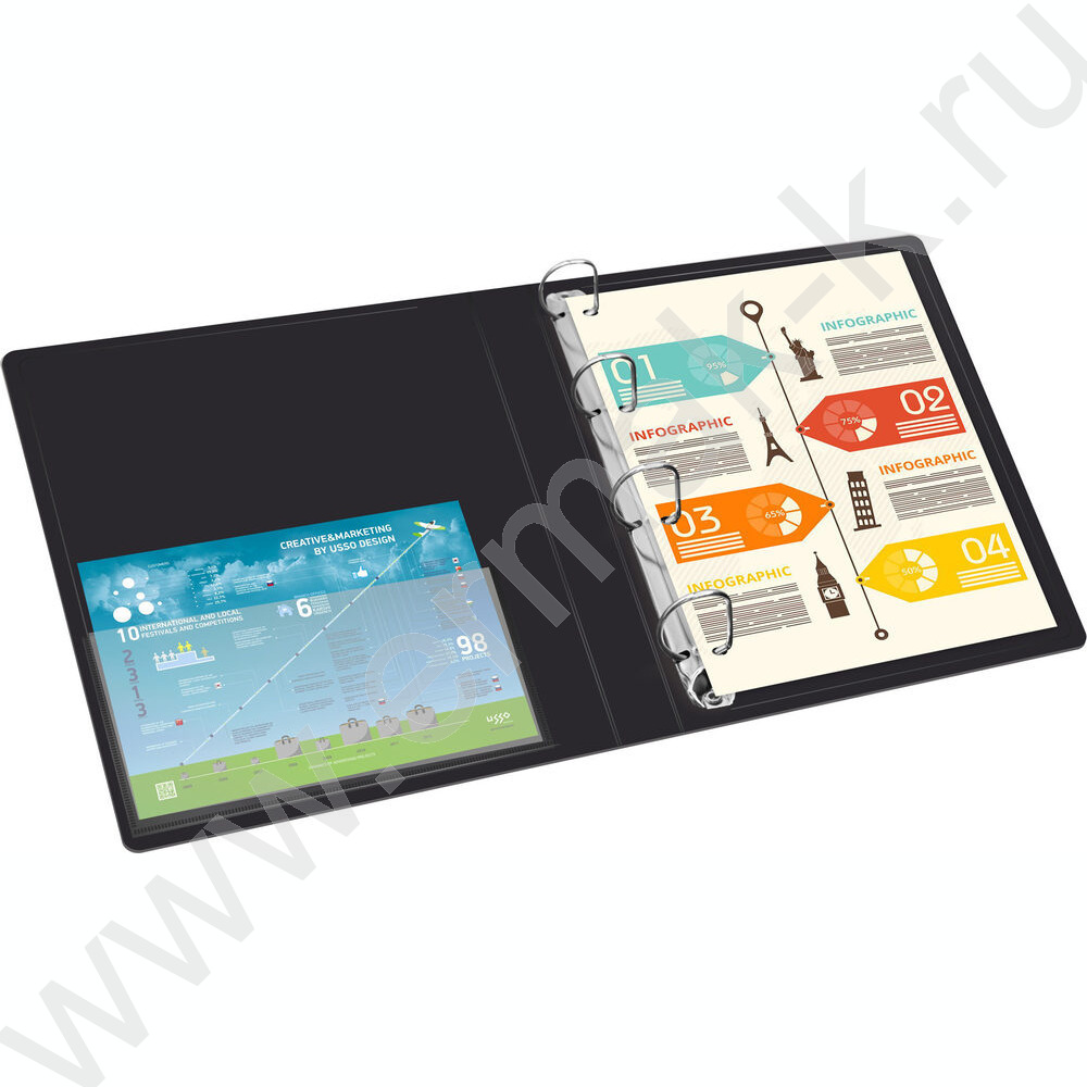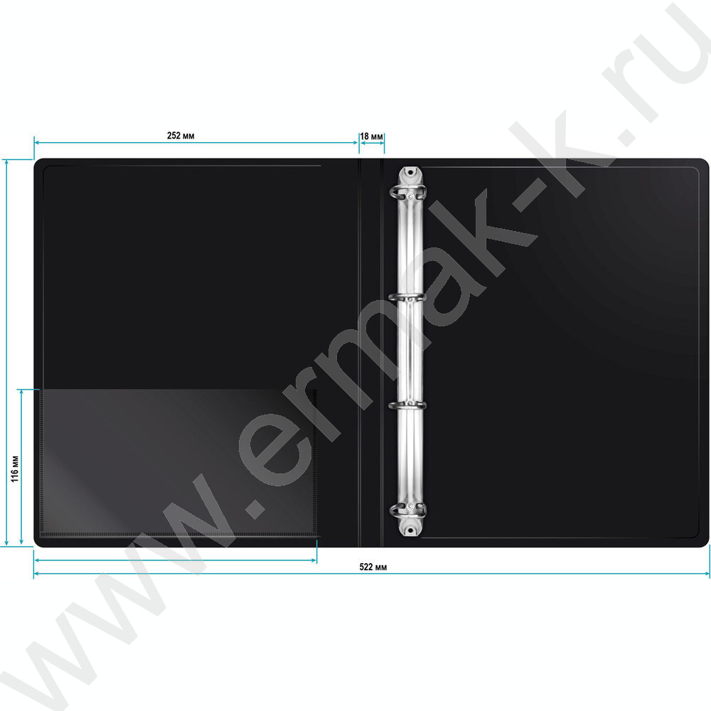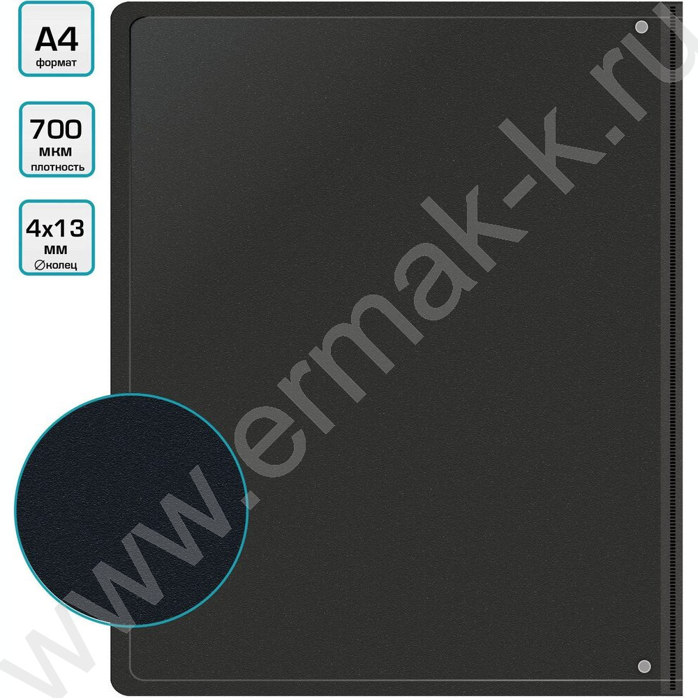 Папка 4 кольца 18мм черная 0,7мм карман внутренний и торцевой