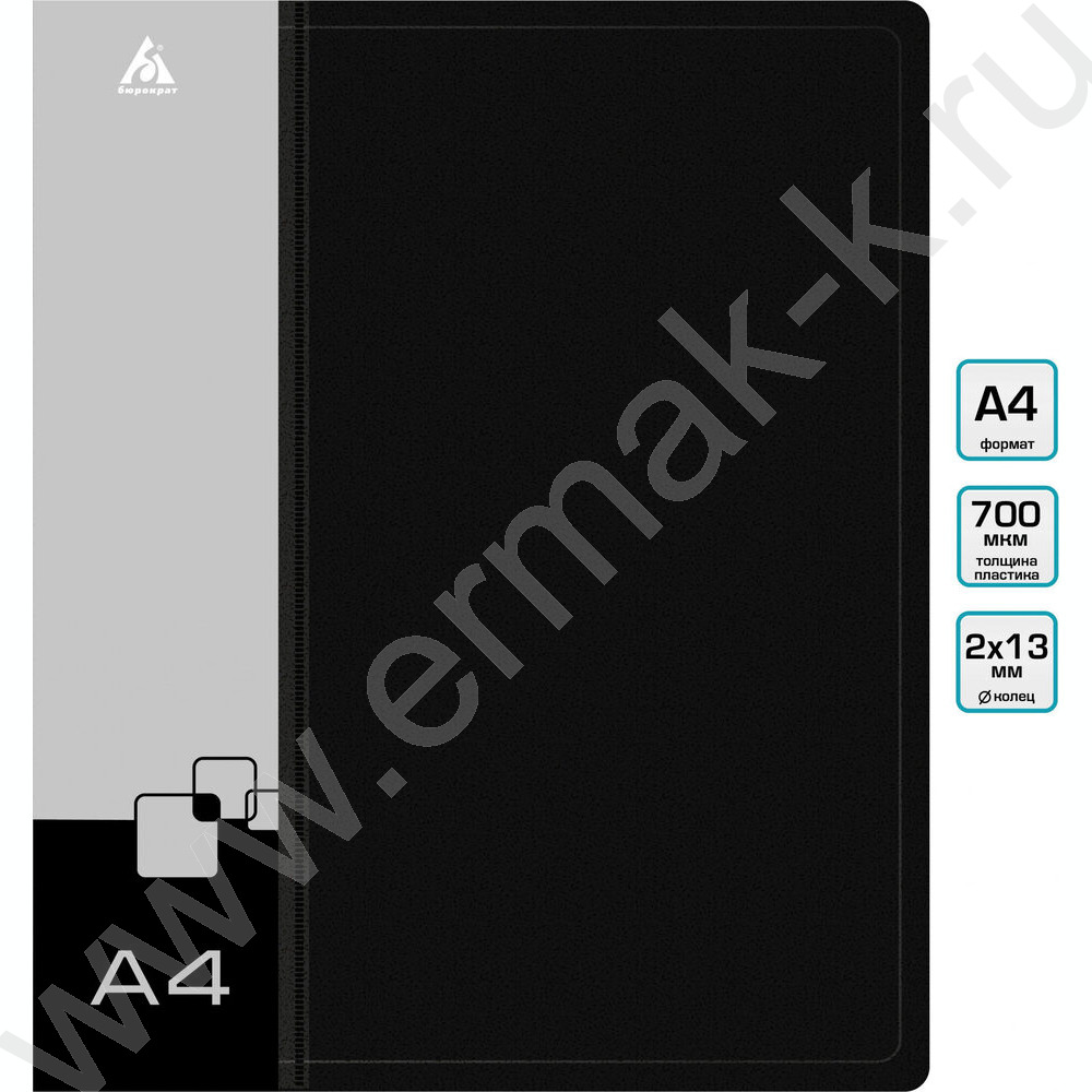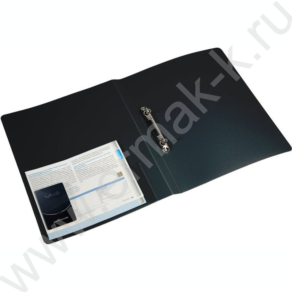 Папка 2 кольца 18мм черная 0,7мм карман внутренний и торцевой