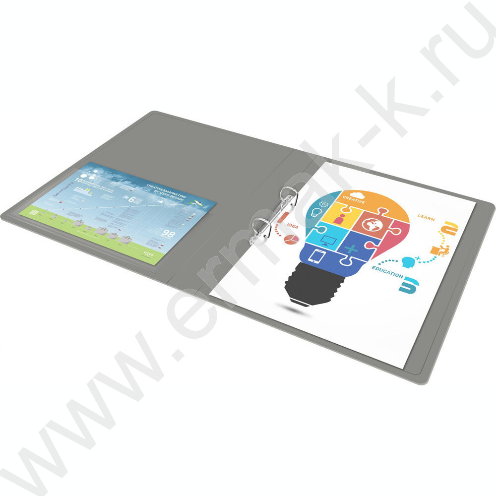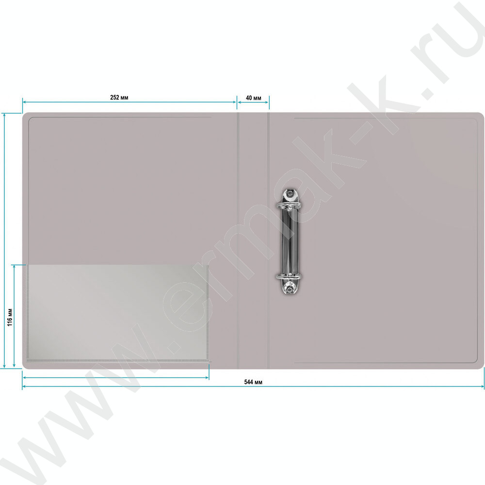 Папка 2 D-образных кольца 40мм серая 0,8мм карман внутренний и торцевой