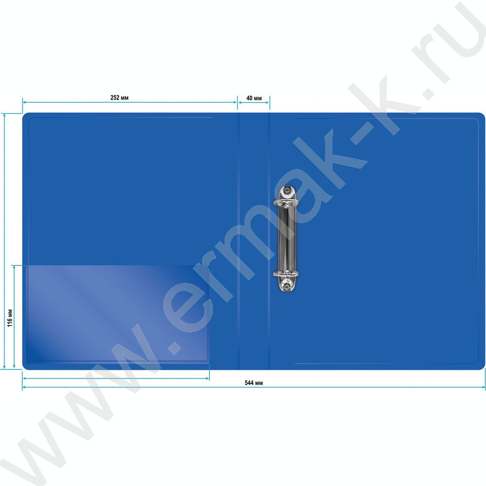 Папка 2 D-образных кольца 40мм синяя 0,8мм карман внутренний и торцевой