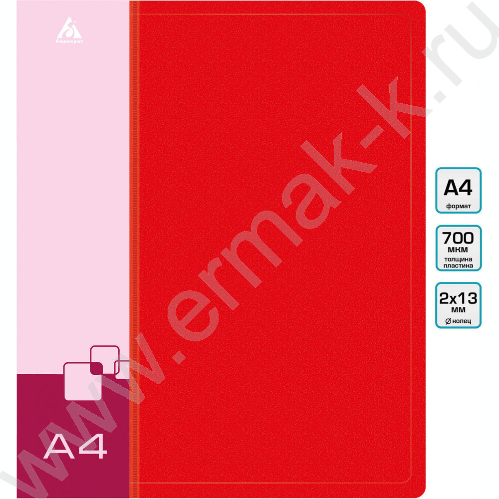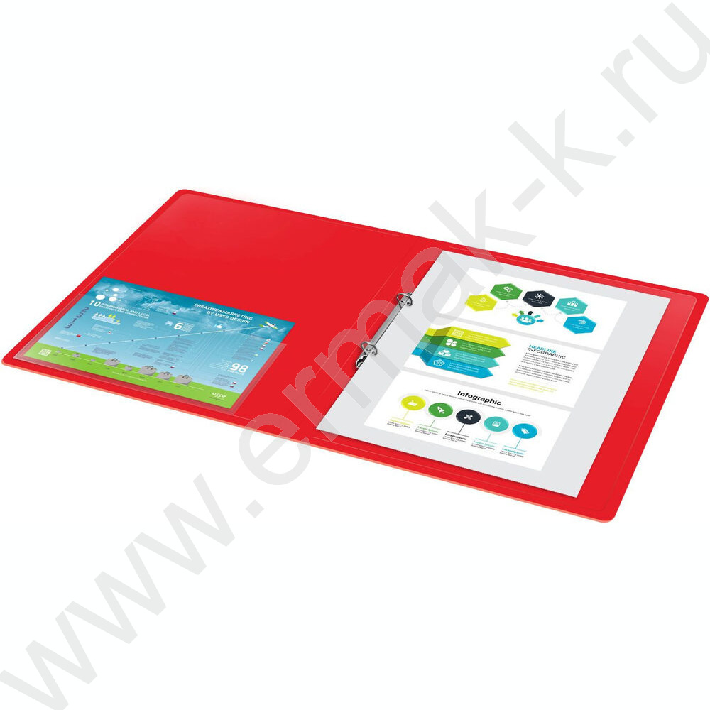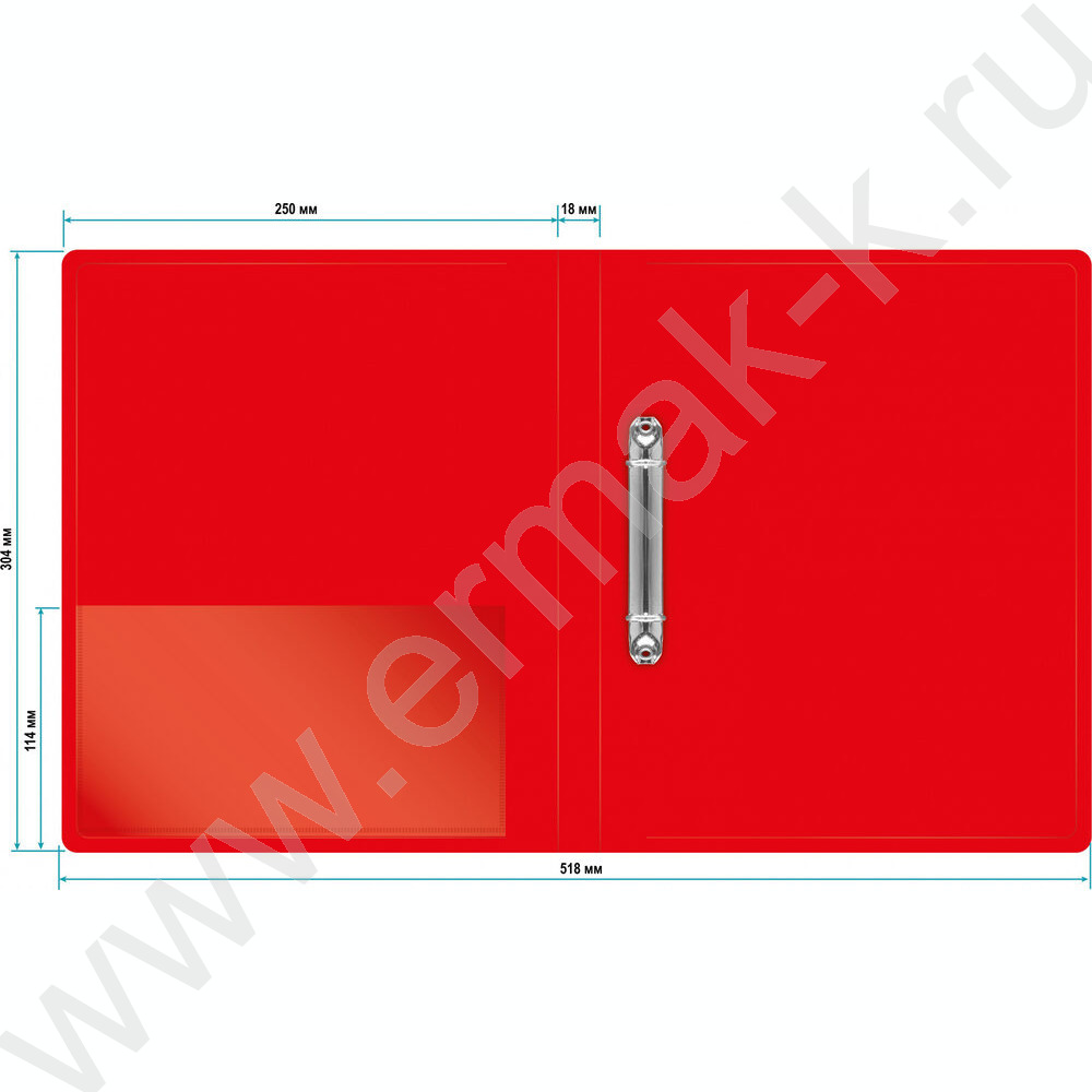 Папка 2 кольца 18мм красная 0,7мм карман внутренний и торцевой