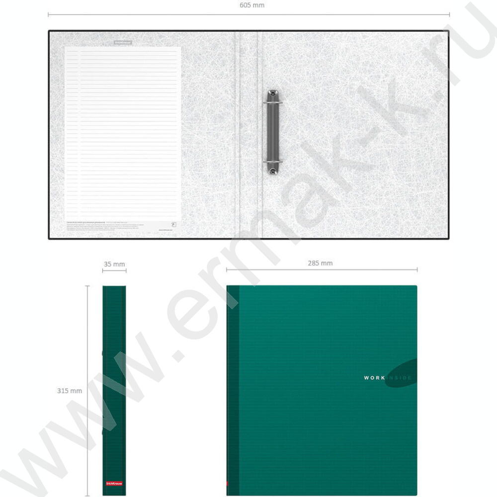 Папка 2 кольца Work Inside ламинир. зеленая