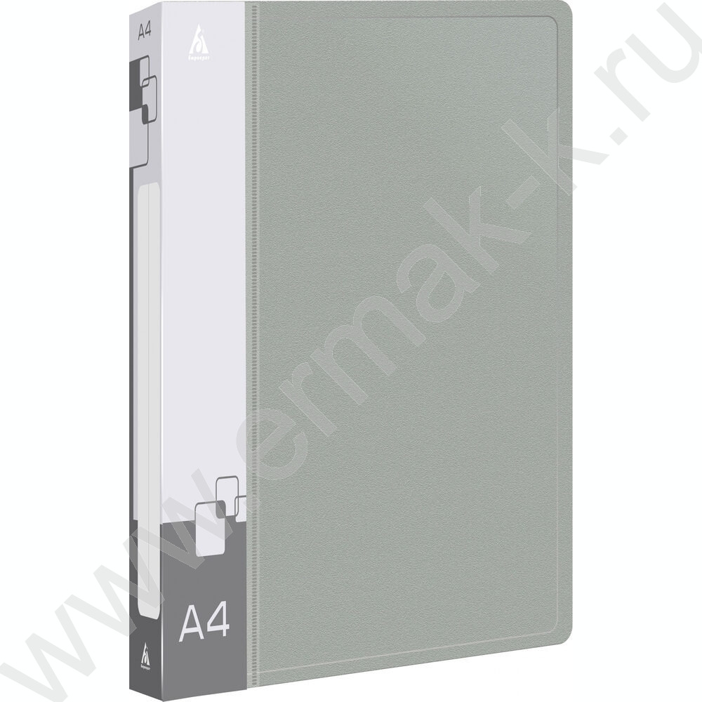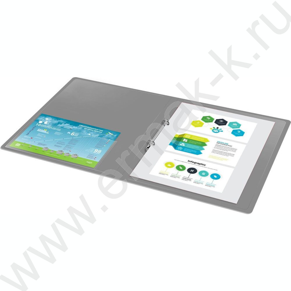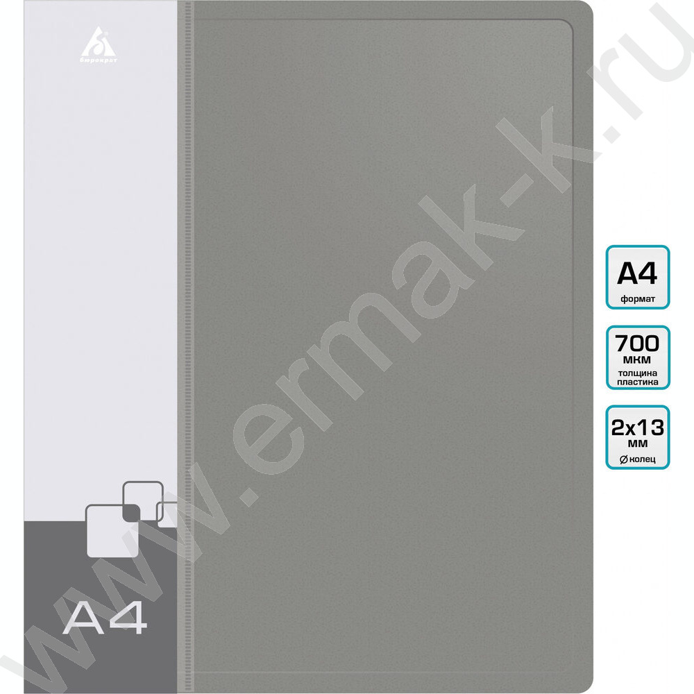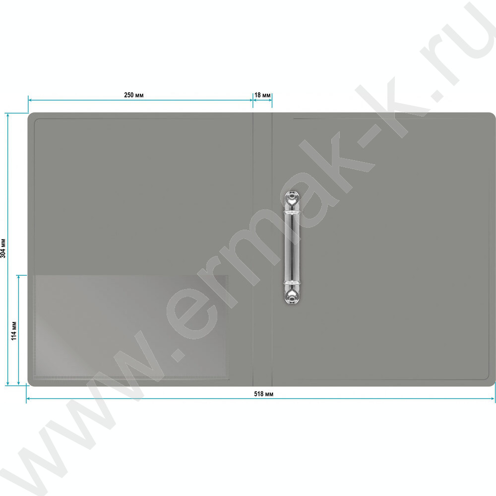 Папка 2 кольца 18мм серая 0,7мм карман внутренний и торцевой