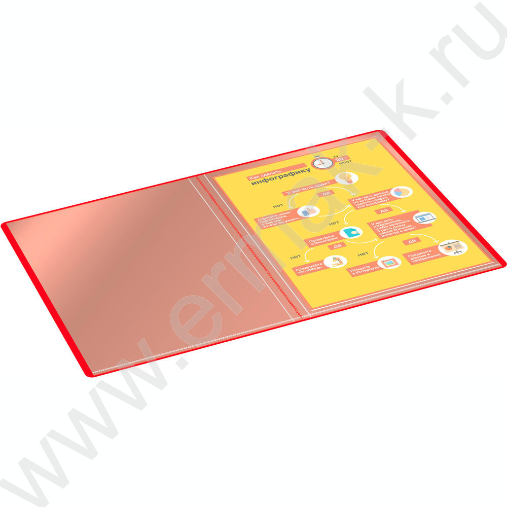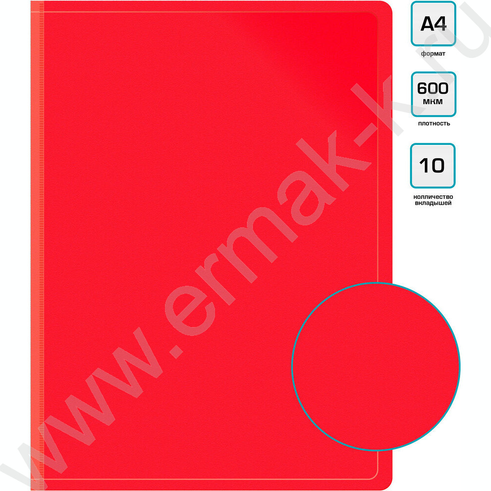 Папка 10 файлов красная 0,6мм карман торцевой с бумажной вставкой