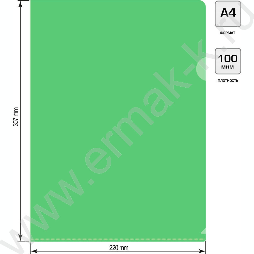 Папка уголок А4 Economy зеленый тисненый 0,10мм