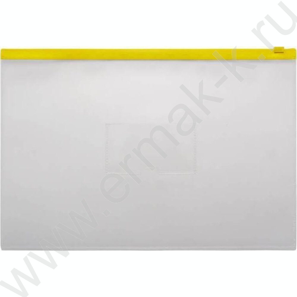 Папка-конверт на молнии А4 ZIP карм.для визит. желтая