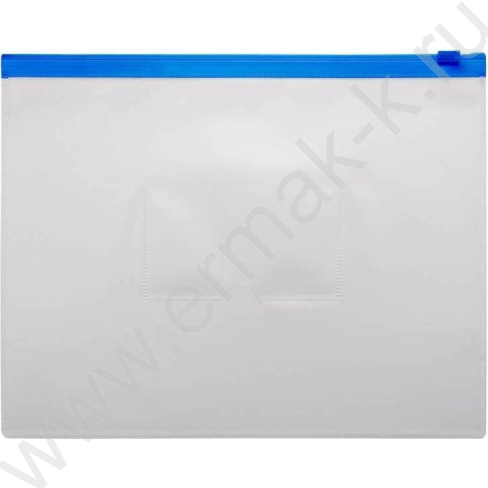 Папка-конверт на молнии А5 ZIP карм.для визит. синяя