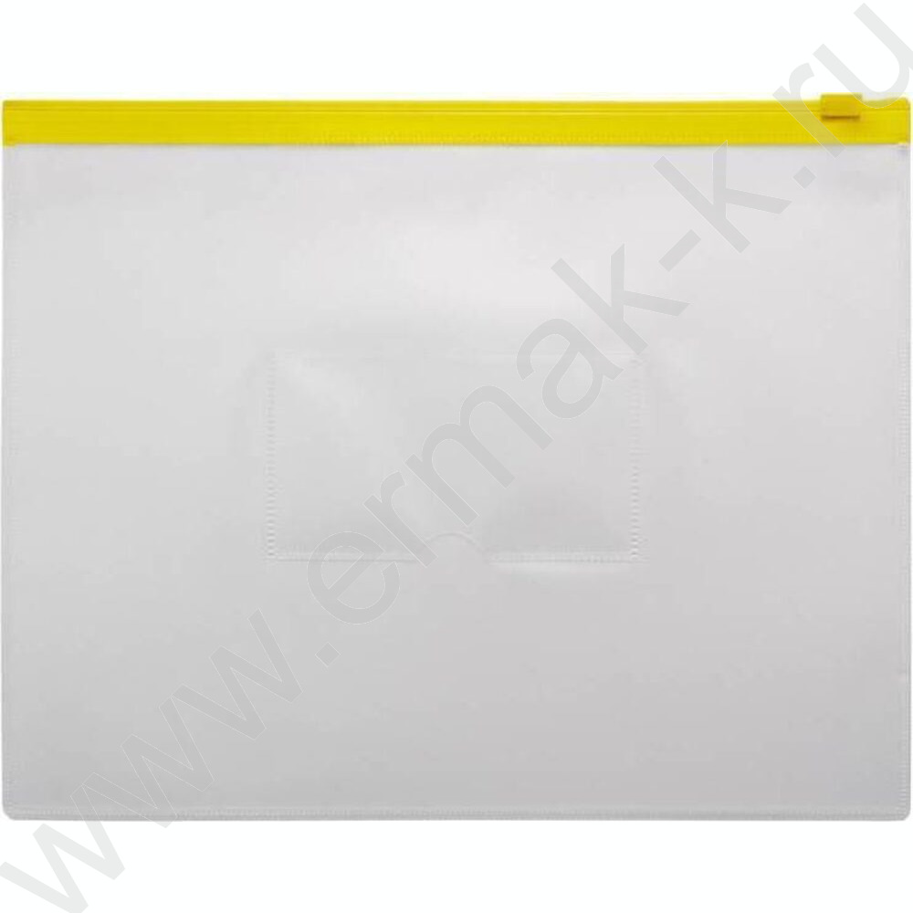 Папка-конверт на молнии А5 ZIP карм.для визит. желтая