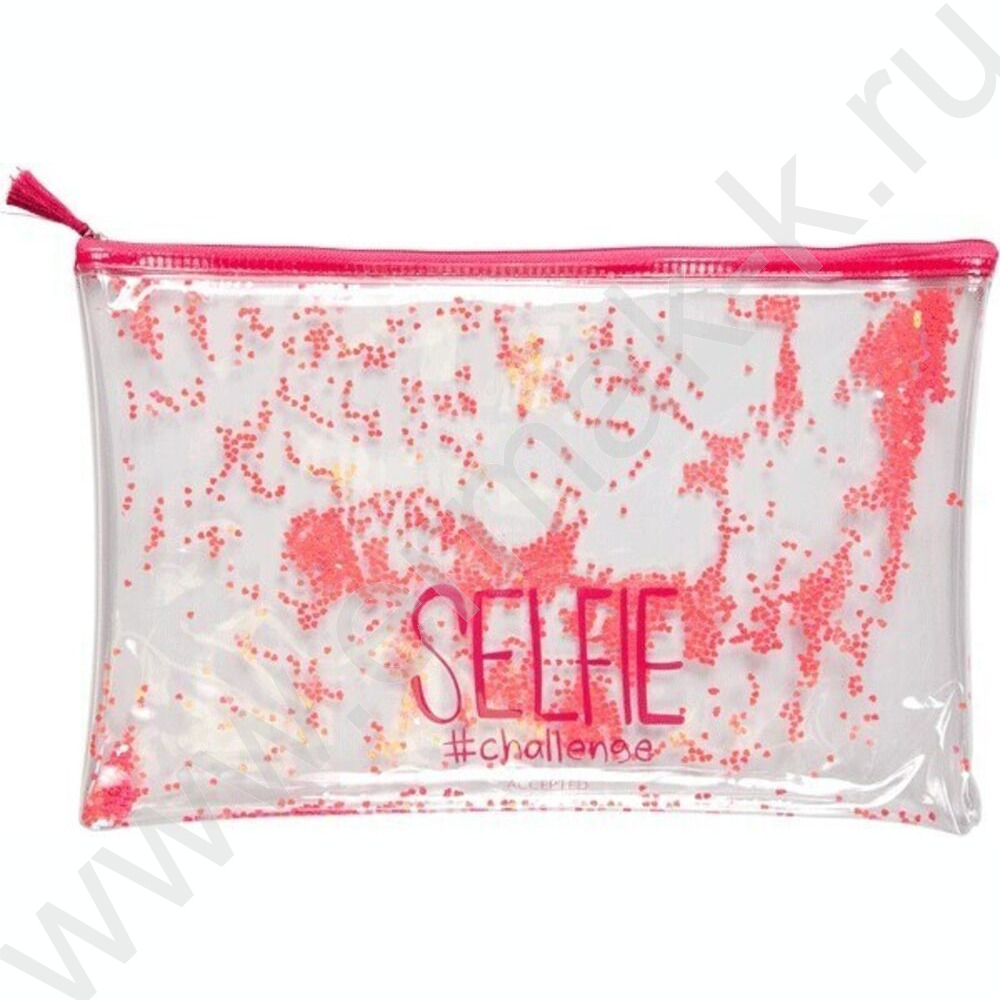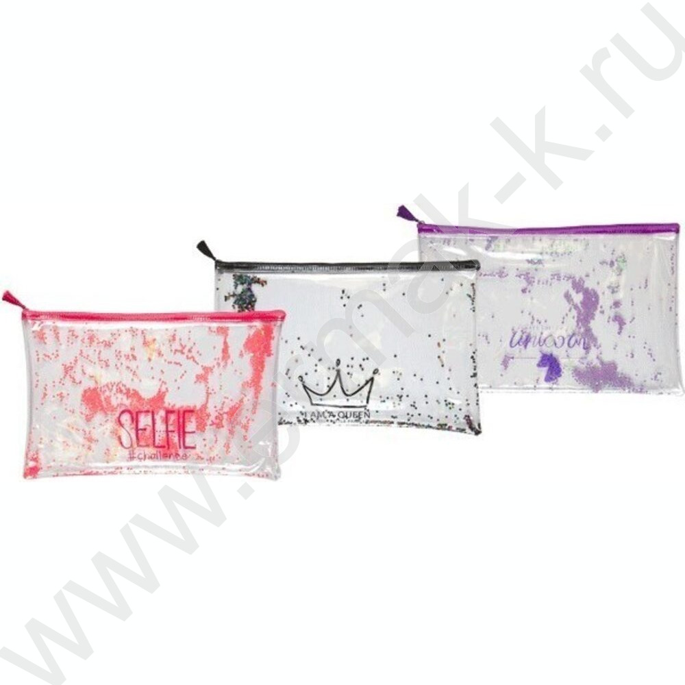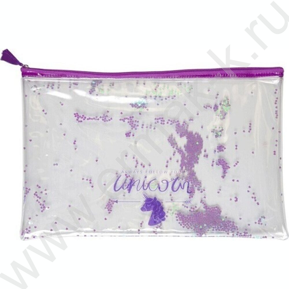 Папка-конверт на молнии A4 (330*220мм) "Glitter Dream" /прозр. ПВХ с печатью и конфетти /ассорти