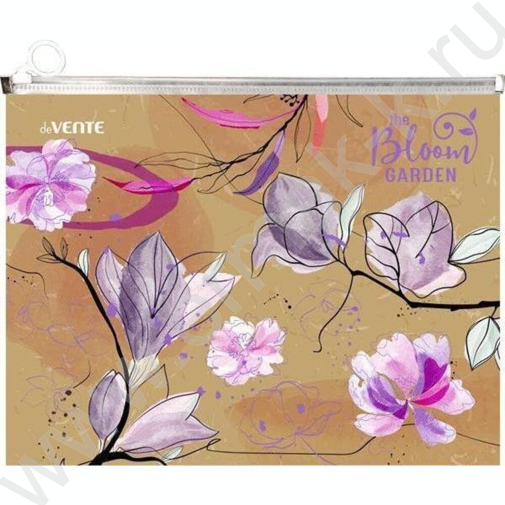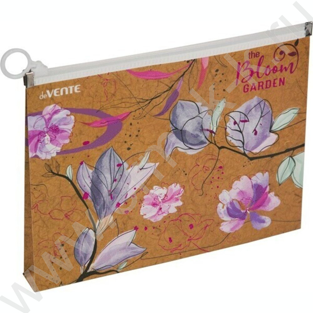 Папка-конверт на молнии А5 с расширением "Bloom Garden" /фактура крафт-имитация с рисунком, 180м