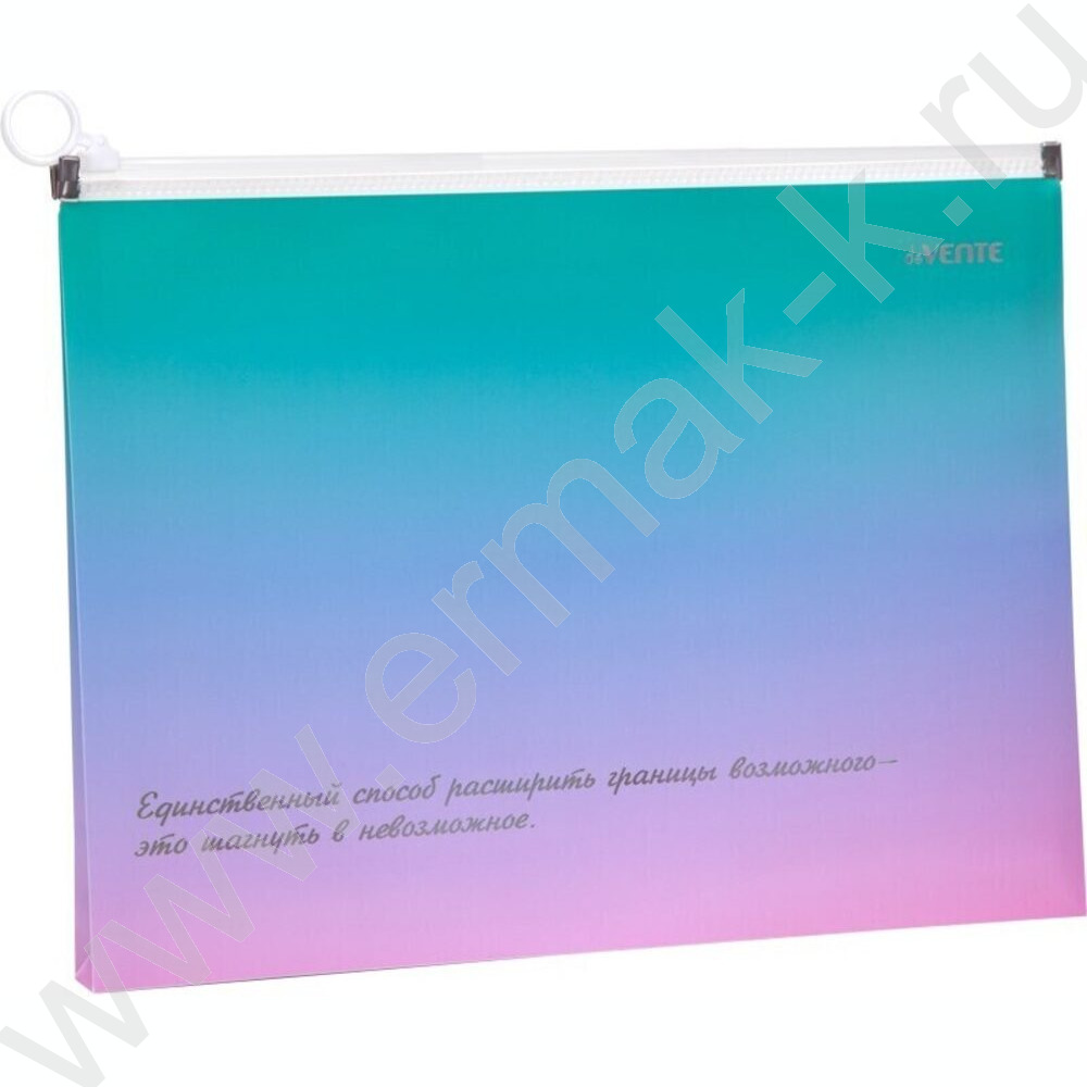 Папка-конверт на молнии А4 с расширением "Degrade" /с рисунком, 180мкм, тиснен фольгой