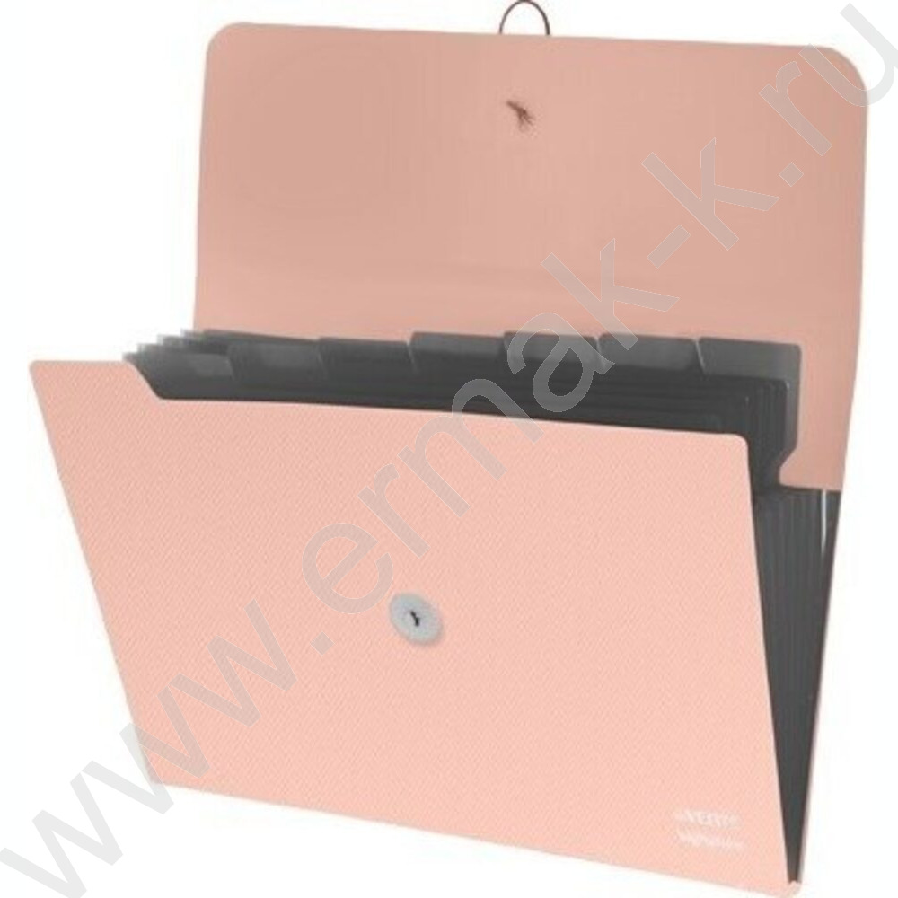 Папка на резинках/кнопке 8отд. A4 "sigNATURE" 600мкм, фактура "ткань" черные разд-ли /розовая