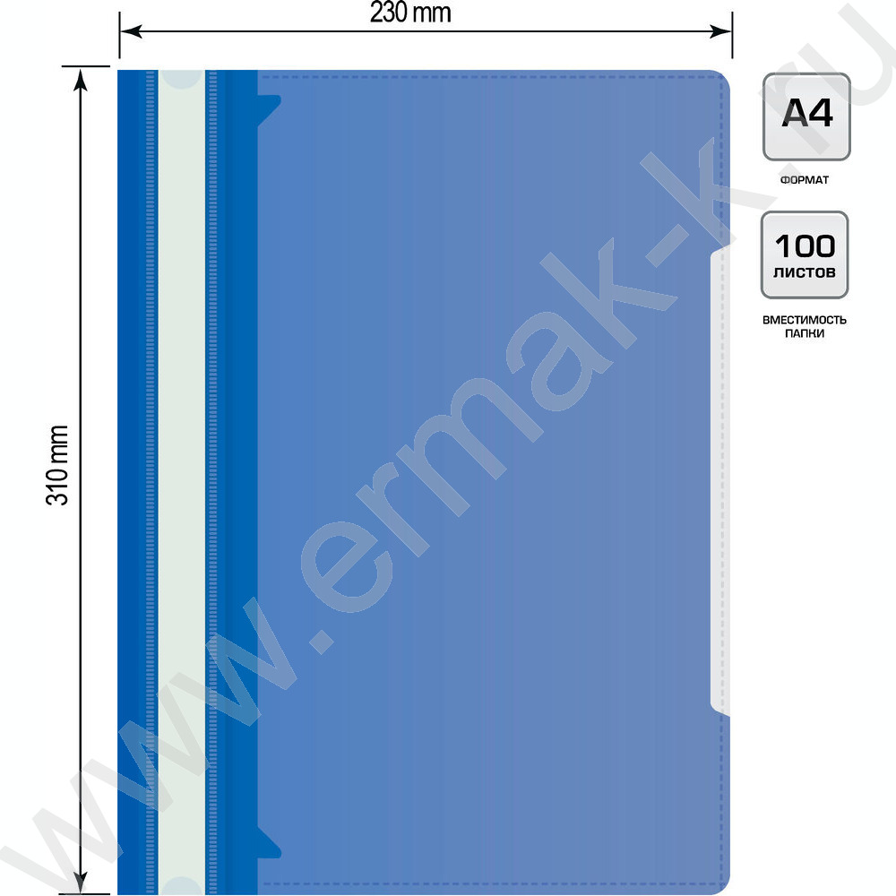 Скоросшиватель пл синий прозрач.верх.лист, карман на лиц.стороне