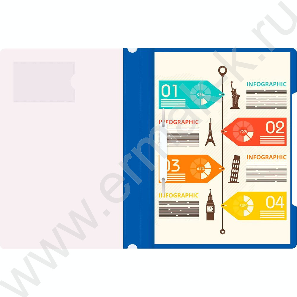 Скоросшиватель пл прозрач.верх.лист, карман для визиток /ассорти