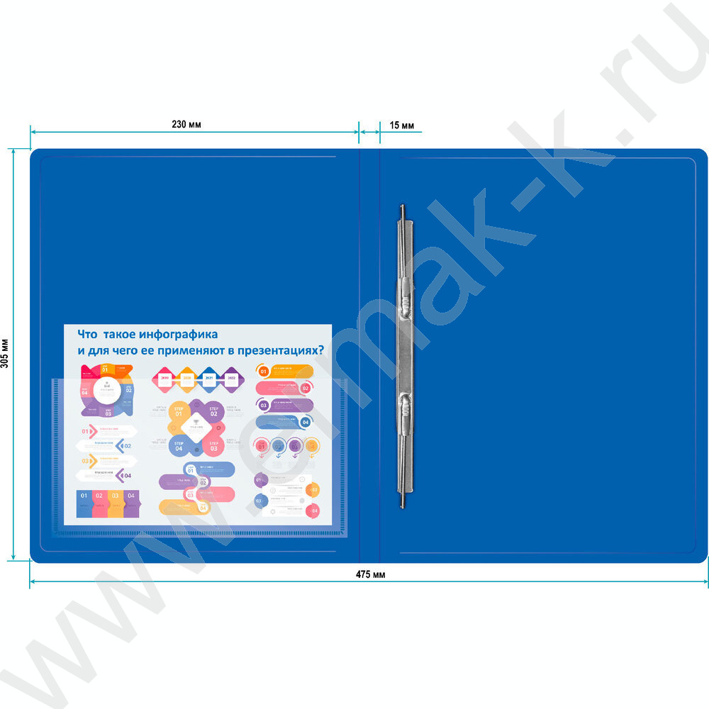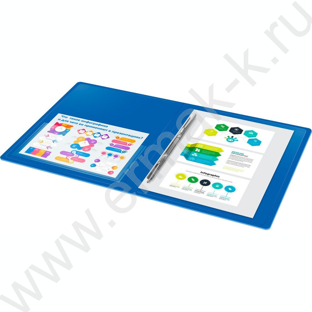 Папка с бок.пруж.скоросшивателем синяя 0,7мм карман внутренний и торцевой