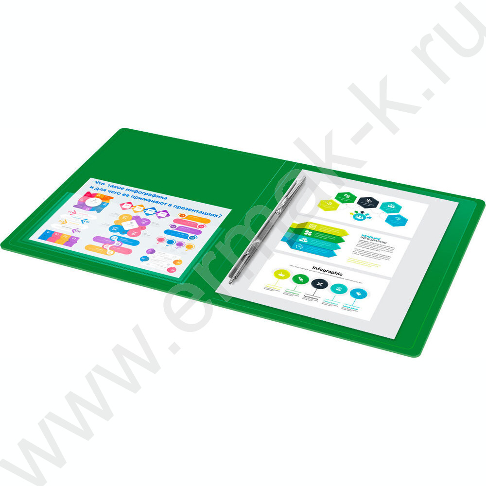 Папка с бок.пруж.скоросшивателем зеленая 0,7мм карман внутренний и торцевой